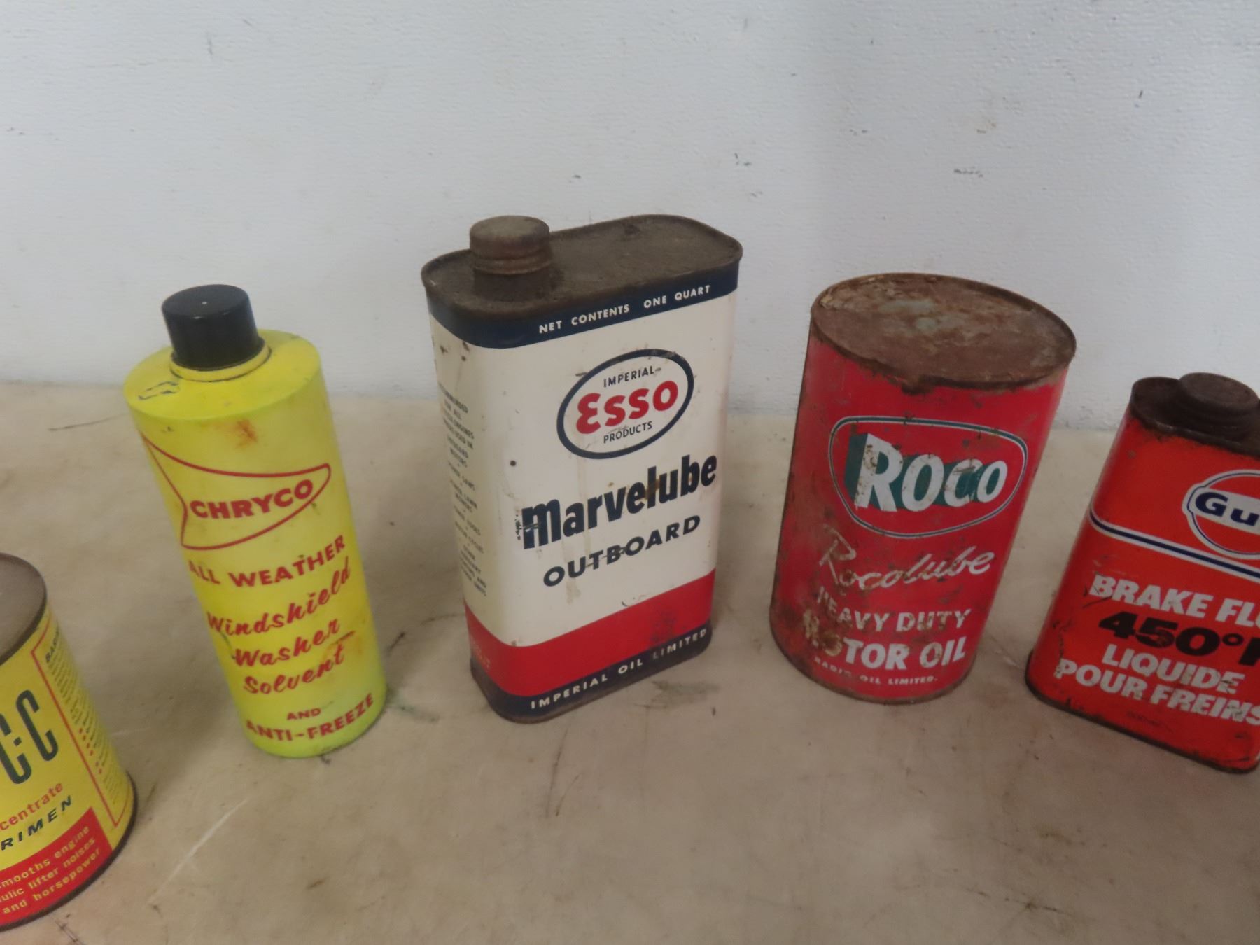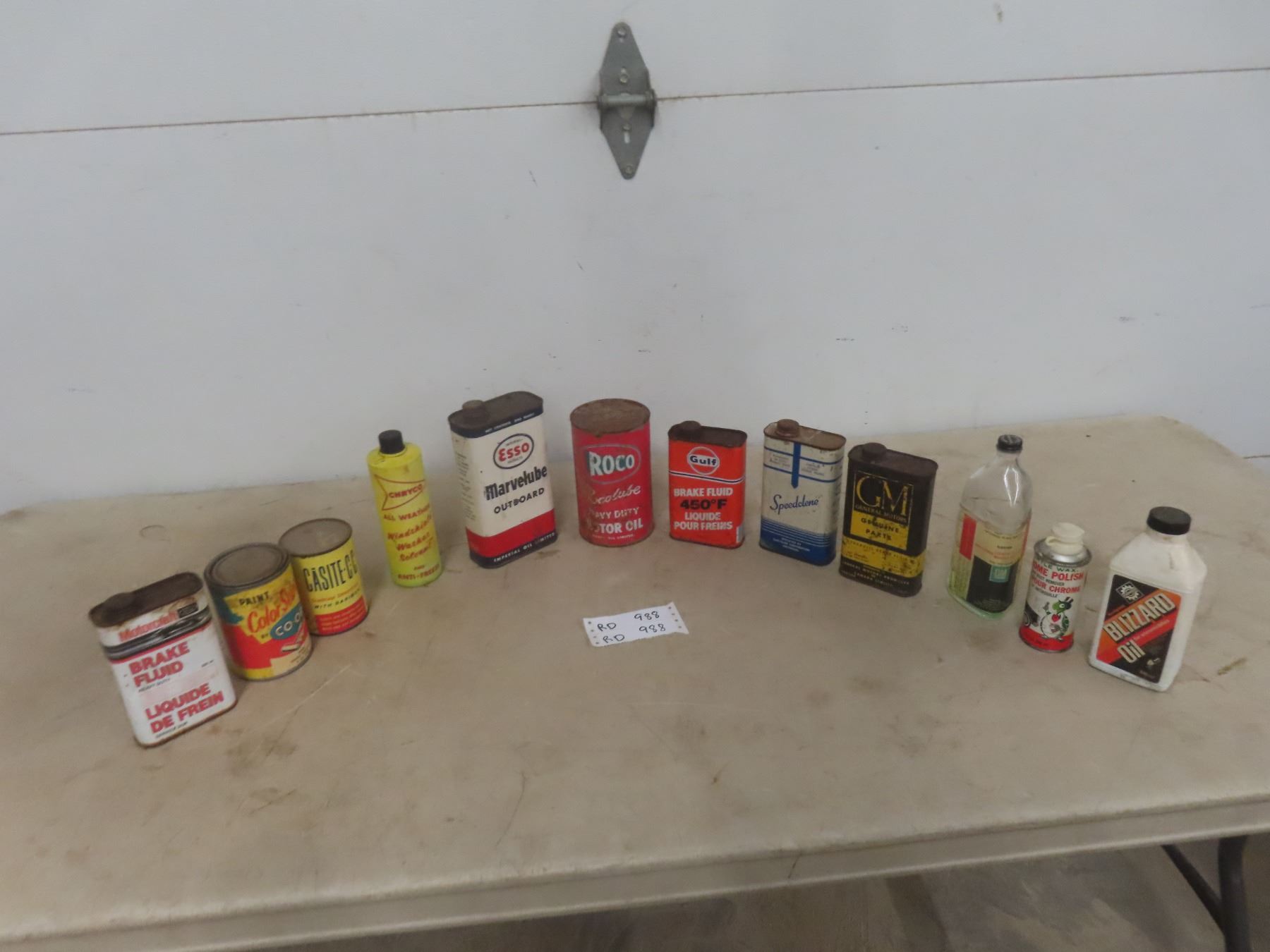 12 Oil Product Cans, Esso, GM, Turtle Wax. Roco, Gulf +