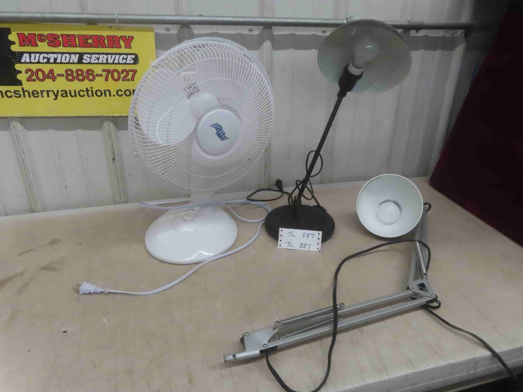 12'' Oscillating Fan, 2 Desk Lights