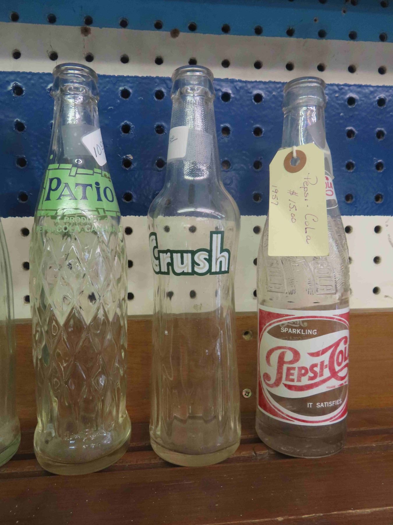 12 Pop Bottles ; Double Cola, Stubby, Patio, Pure Spring, plus others