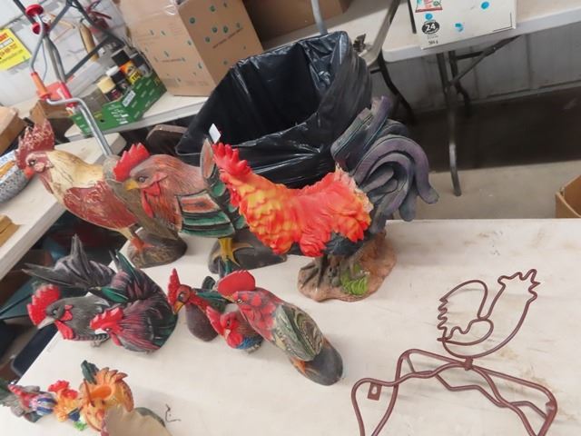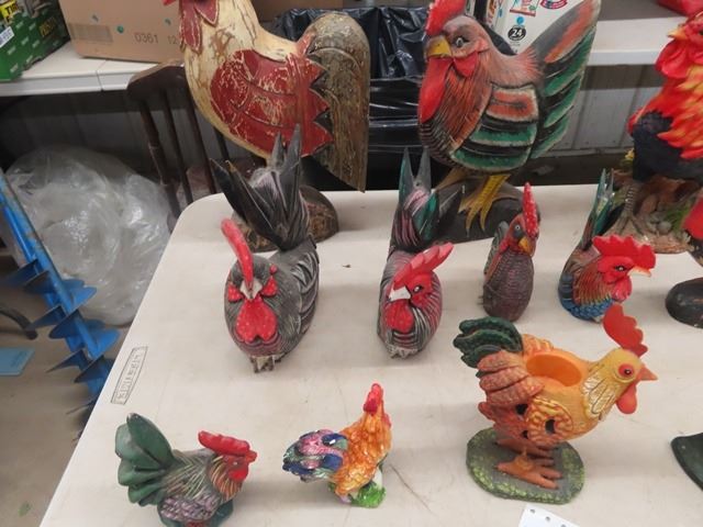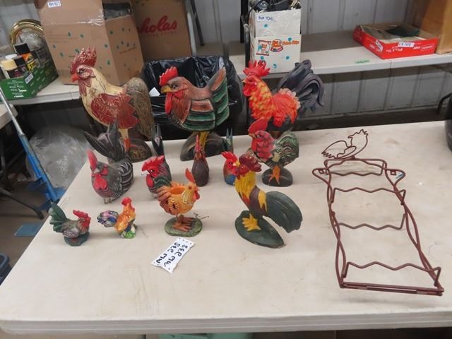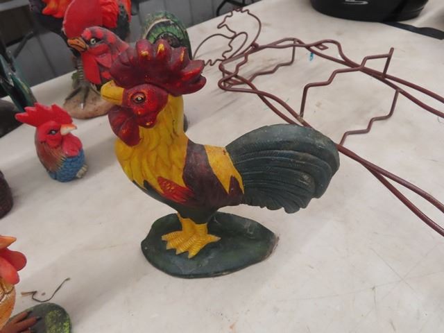 12 Rooster Ornaments & Cast Door Stop