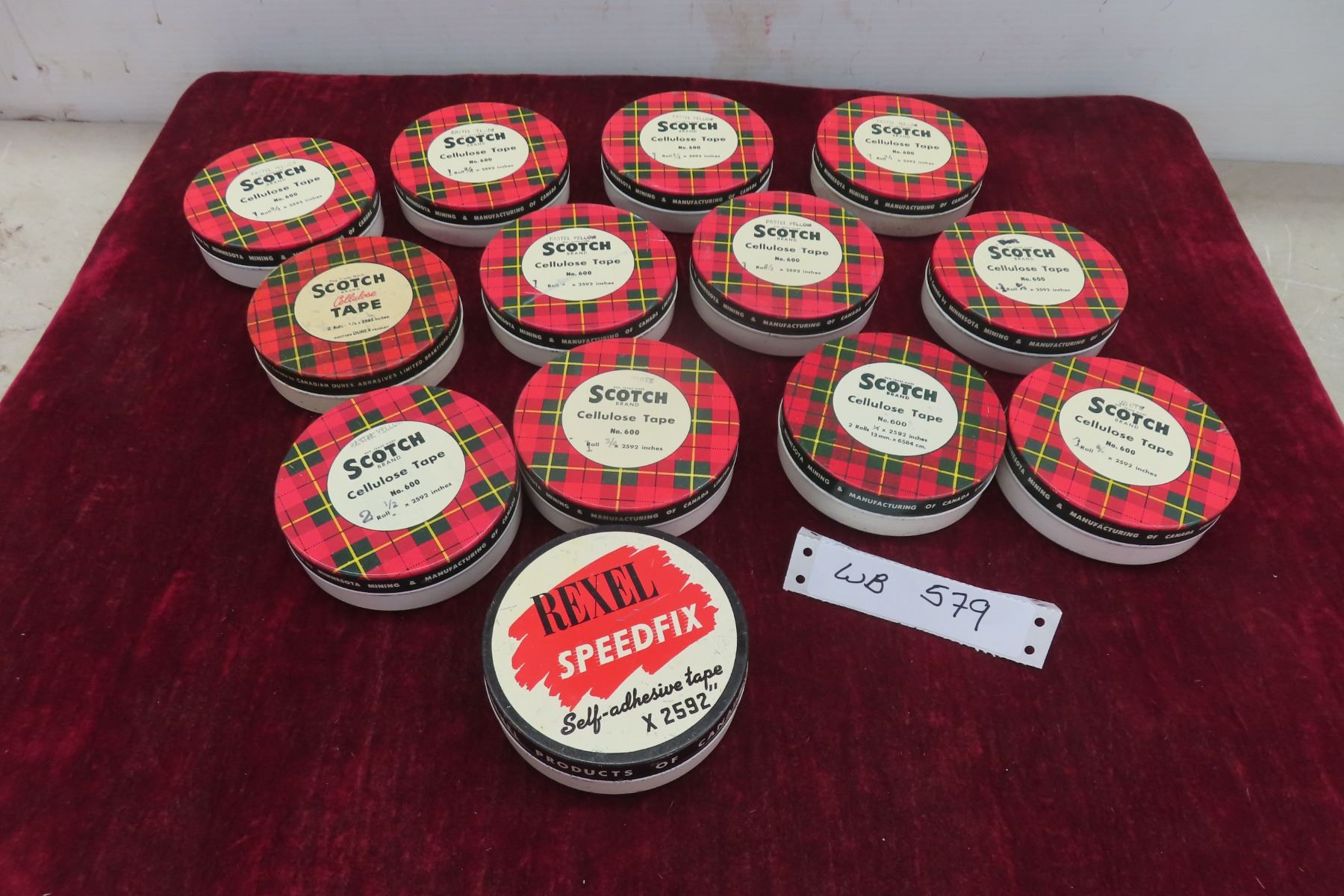 12 Scotch Cellulose Tape 4" Metal Tin + 1 Rexel Speed Flex Tape
