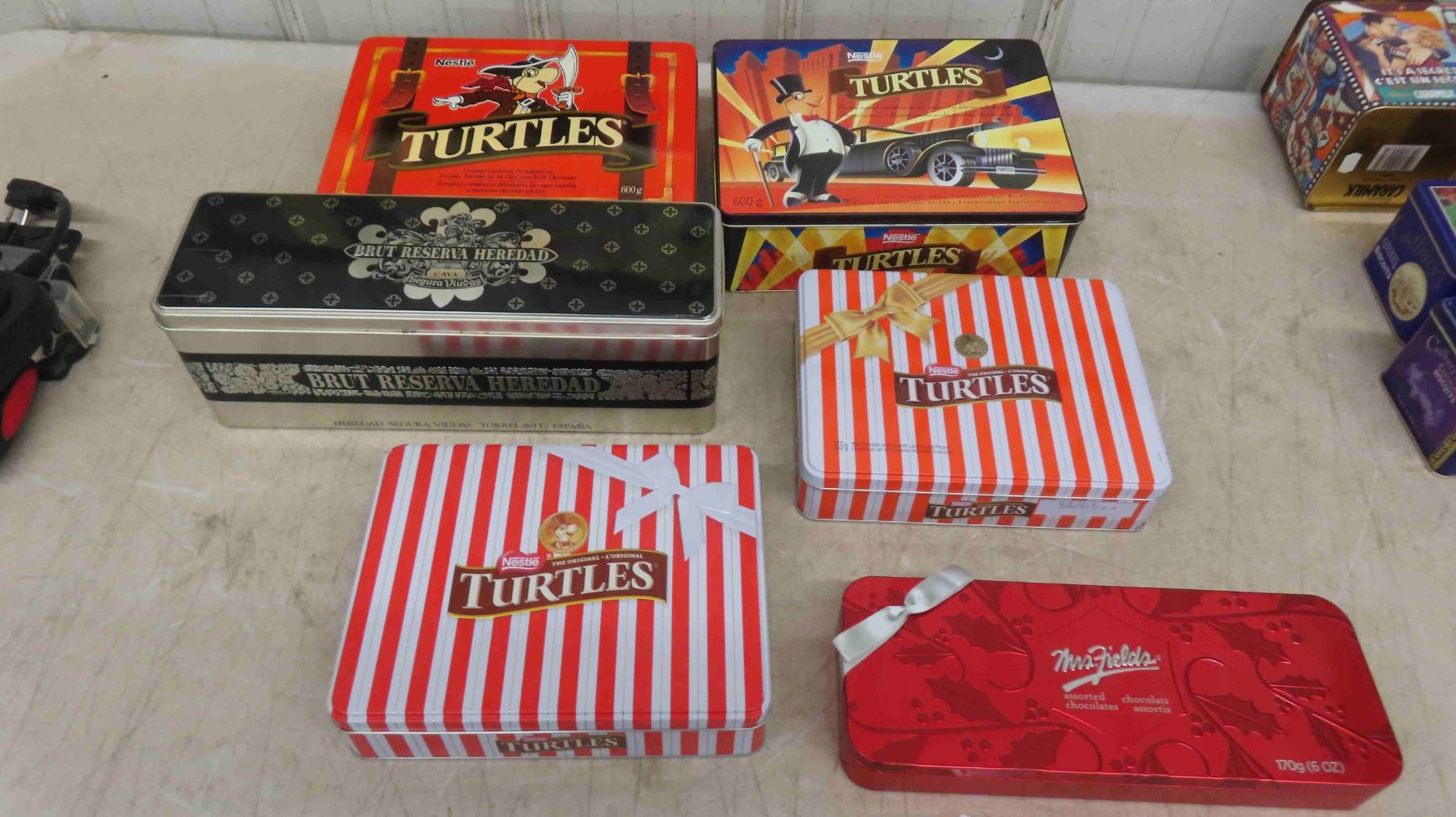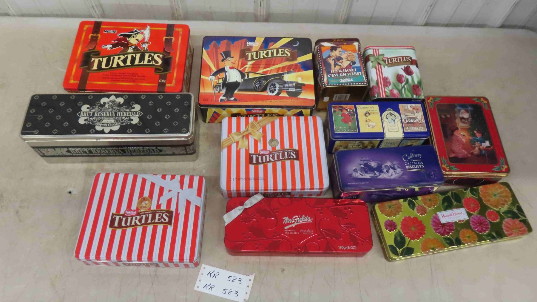 12 Tins ; Turtles, Cadbury, Mrs. Fields, plus more