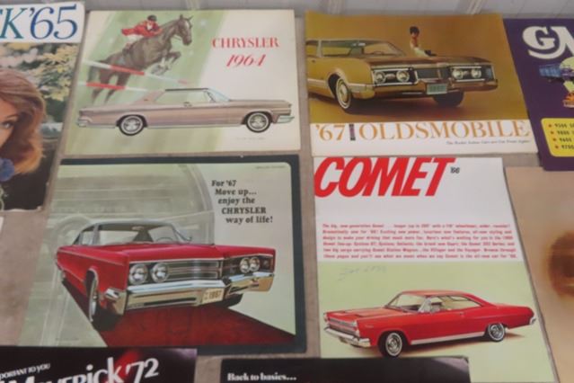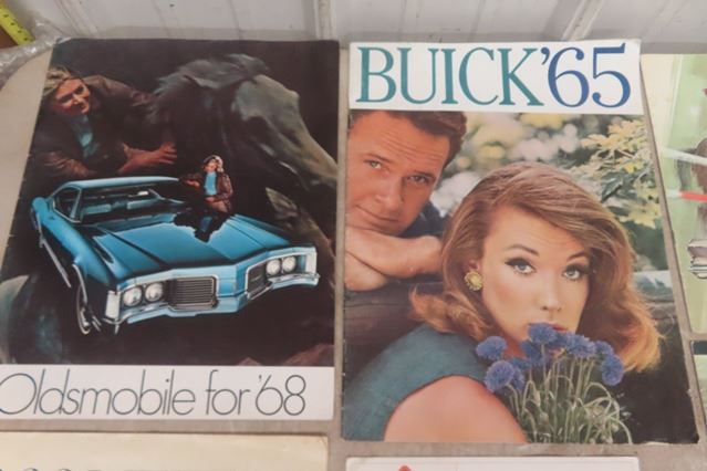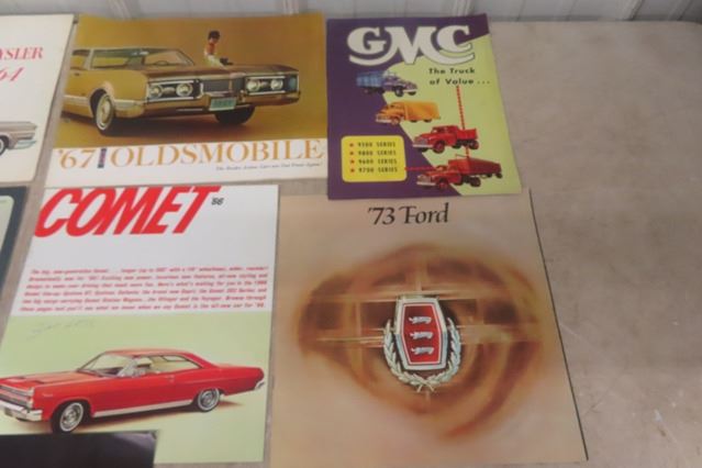 12 Vintage Auto Brochures ; Oldsmobile, Chrysler, Ford, GMC plus others - 1950's - 70's