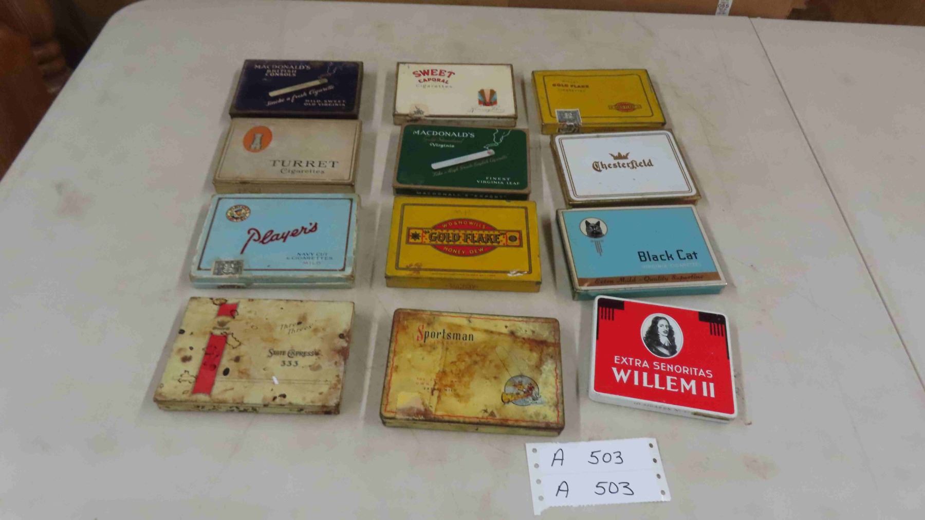 12 Vintage Cigarette Tins - Black Cat, Gold Flake, Plus