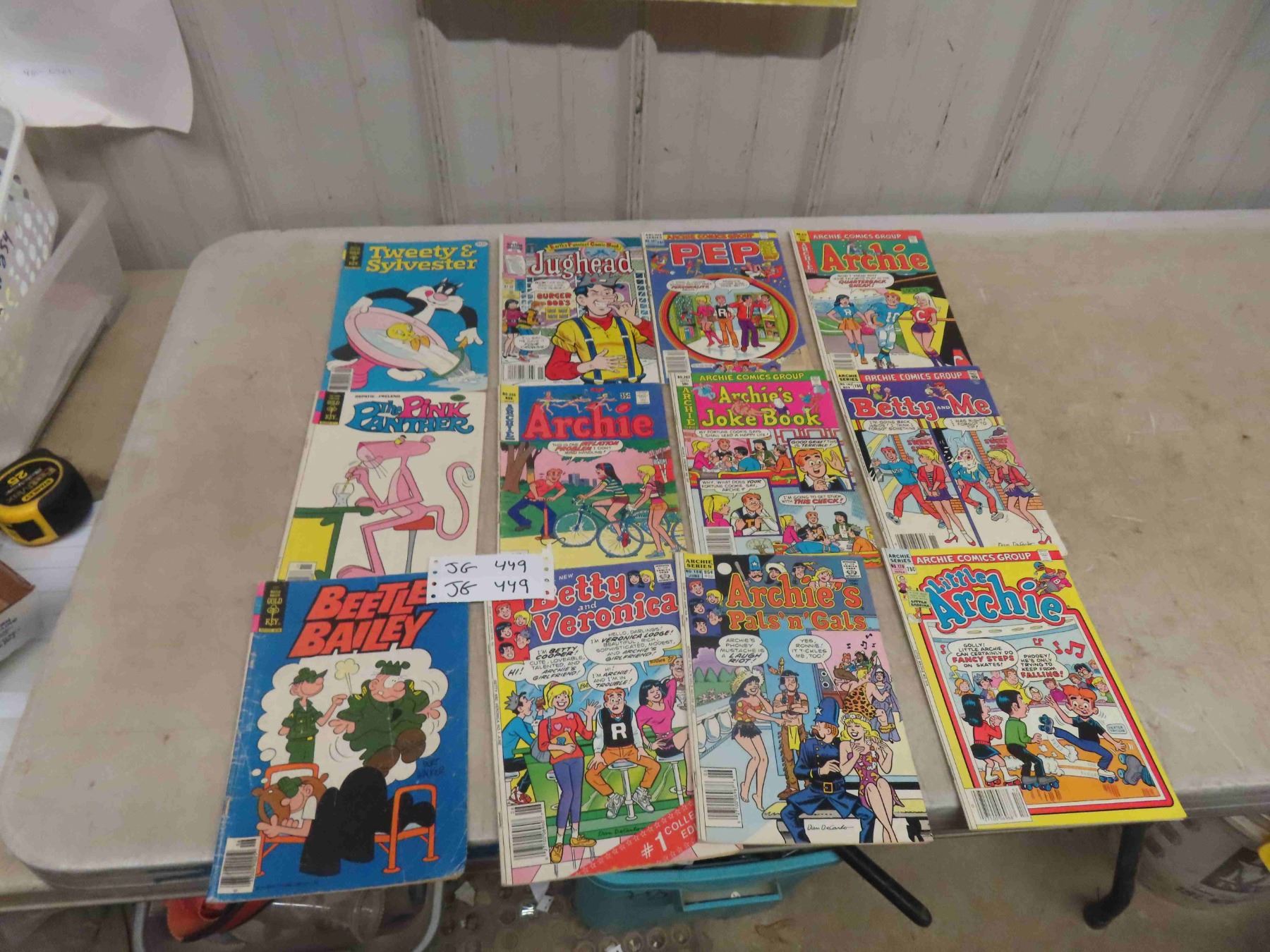 12 Vintage Comic Books ; Archie, Betty + Veronica, Jughead, Gold Key Cartoon Comics