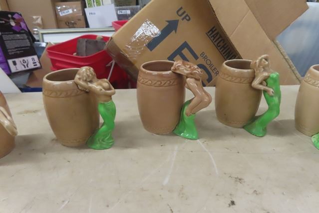 12 Vintage Risque Nudie Girls / Mermaid Cups - Several Different Poses