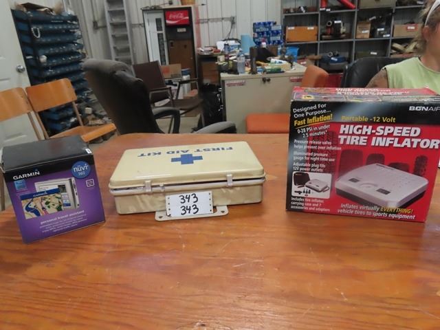 12 Volt High Speed Tire Inflator, First Aid Kit, Garmin GPS