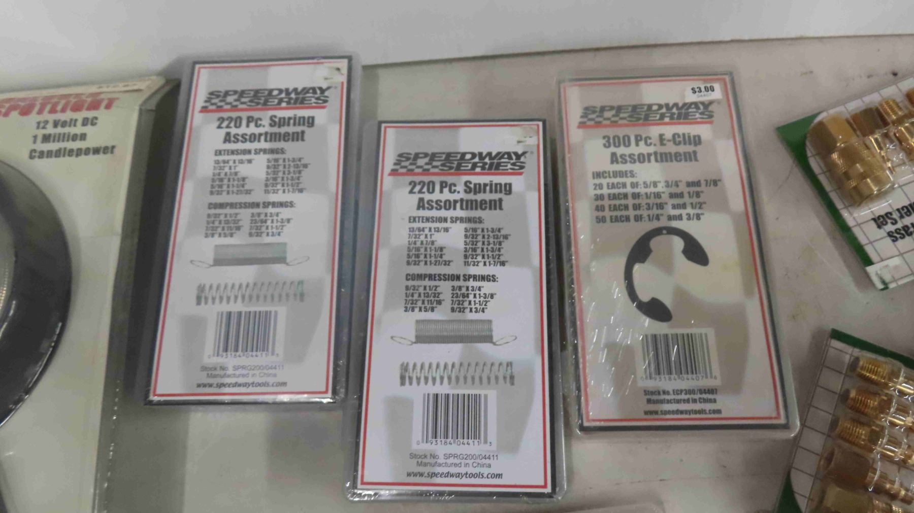 12V Halogen Spotlight, Spring Assortment, E Clips, Retaining Ring Assortment, Air Coupling, Screw Bit Assortment, Drill Water Pump