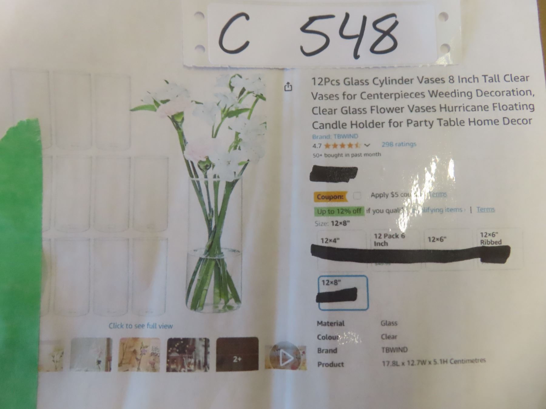 12pcs, Glass Cylinder Vases. 8'' Tall Vases for many occasions. Home Décor, New or Store Return.