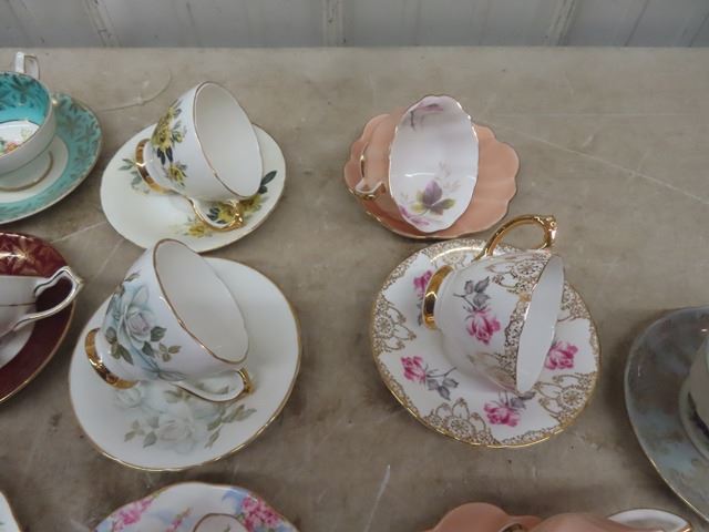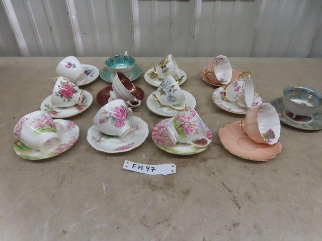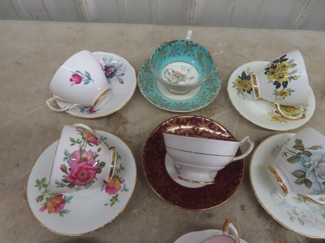 13 Tea Cups + Saucers ; Royal Albert, Royal Trent, Shelley, Gladstone plus more