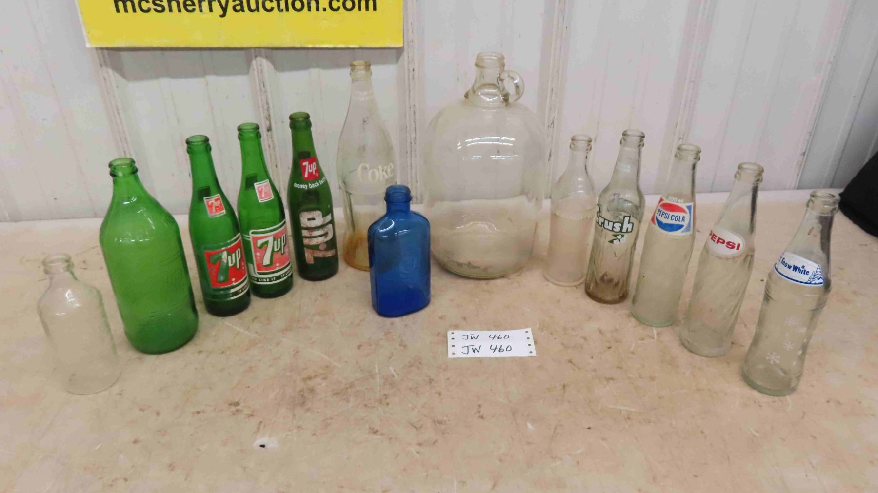 13 Various sz Bottles, 7Up, Finger Jug, Pepsi, Snow White, plus more