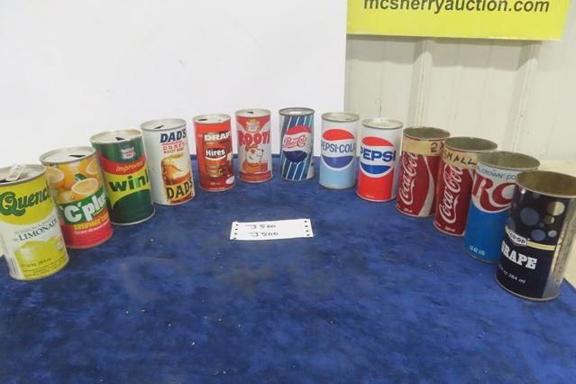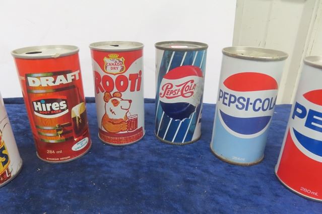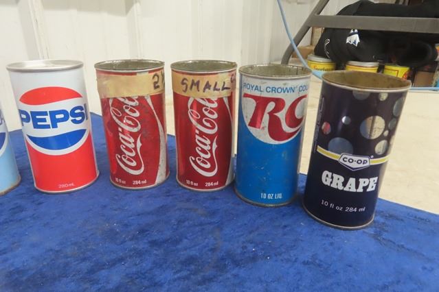 13 Vintage Tin Soda Pop Tins; Pepsi, Coke, Wink, Root Beer plus more