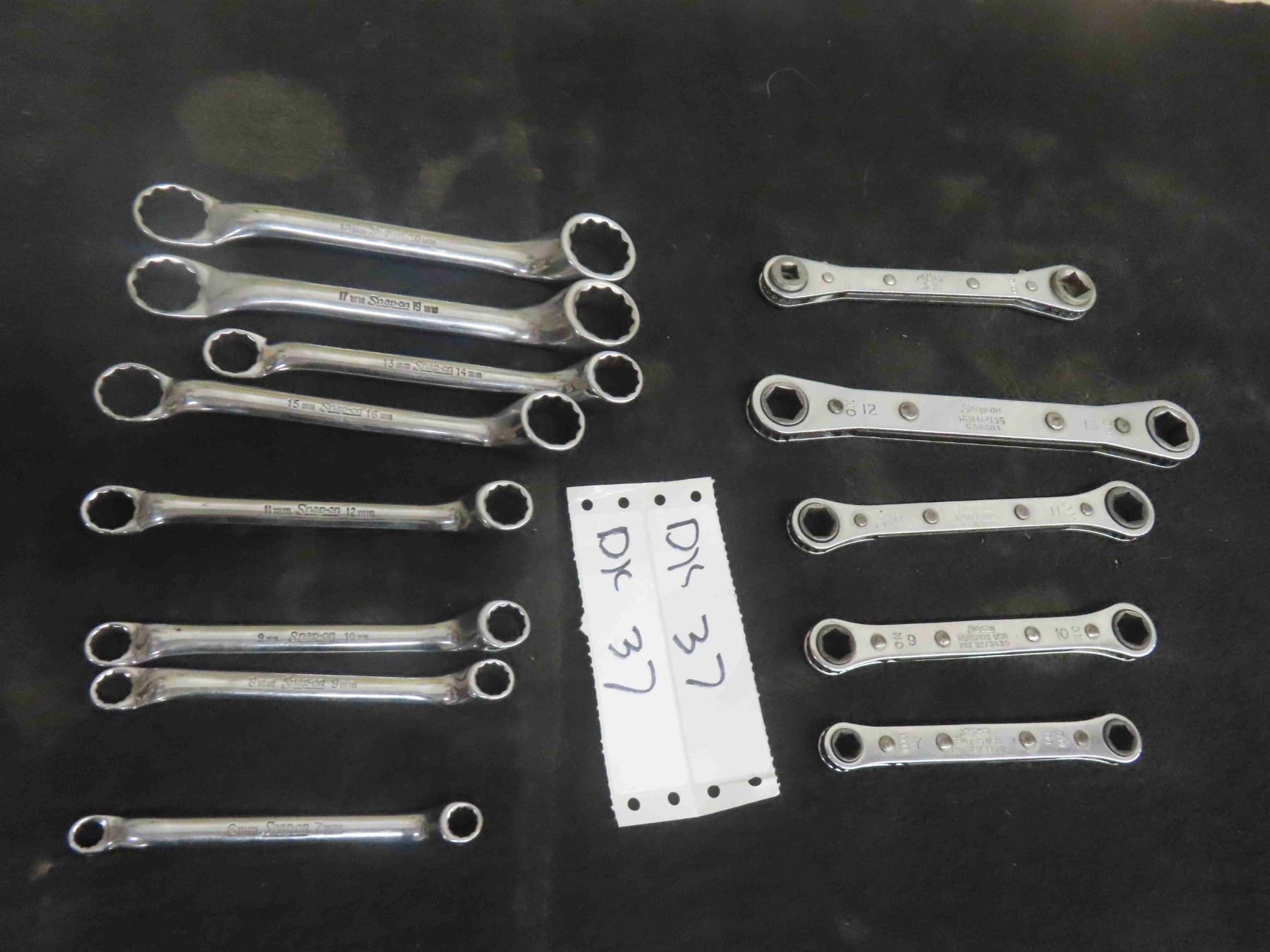 13 Wrenches: 8 Snap On Boxed Wrenches, 5 Snap On Ratchet Wrench, 1 Mac