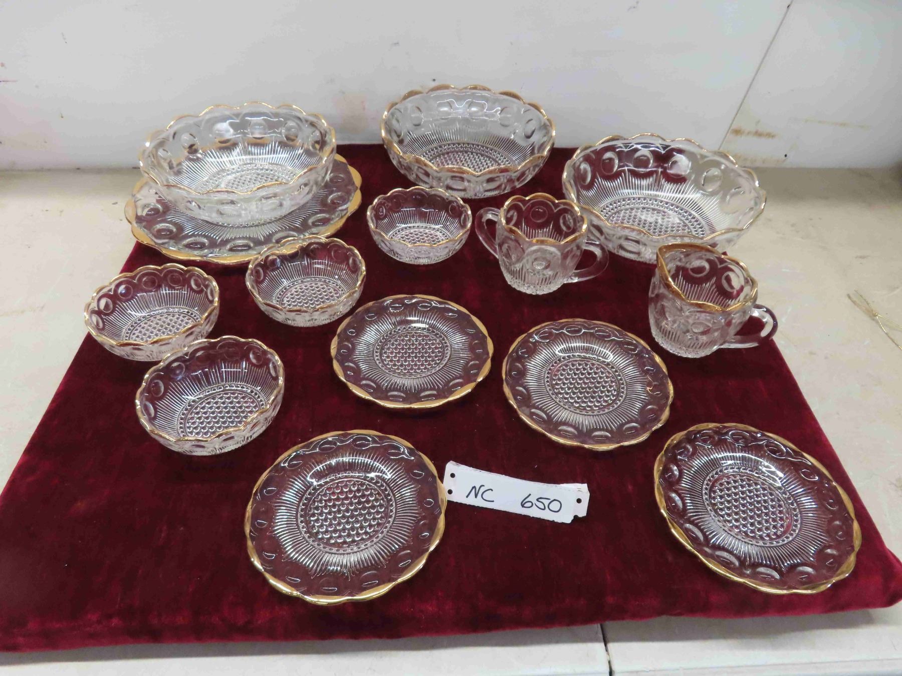 14 Pieces Pressed Glass 1902 Mahattan Pattern. Dessert/Salad Set