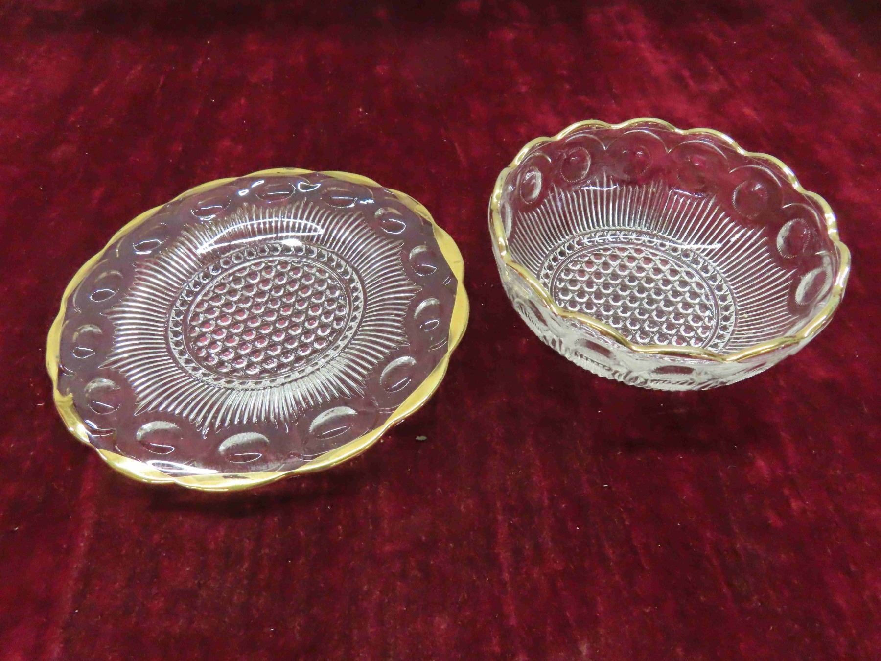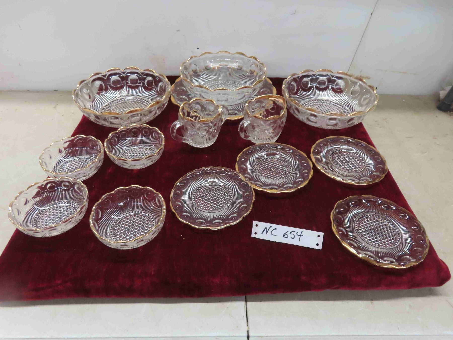 14 Pieces Pressed Glass 1902 Mahattan Pattern. Dessert/Salad Set