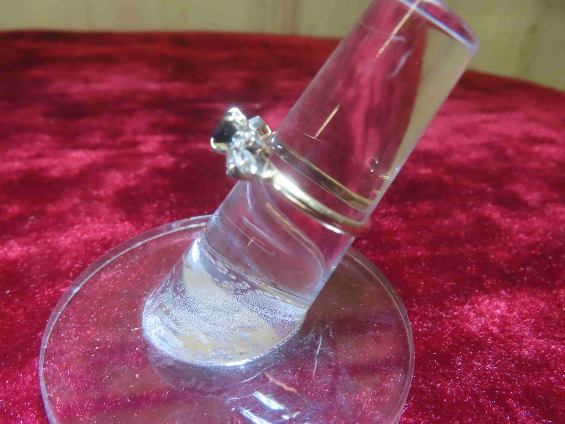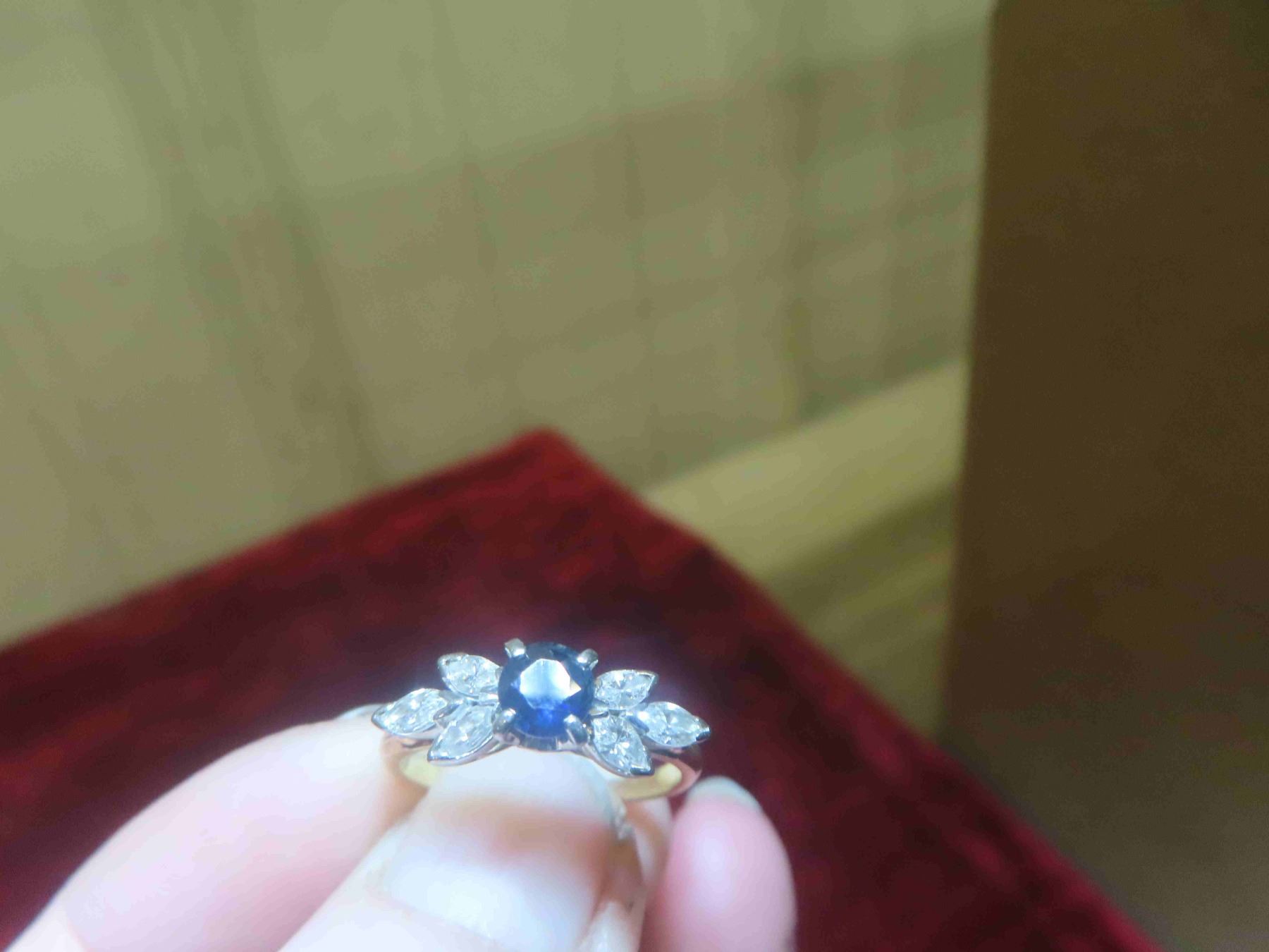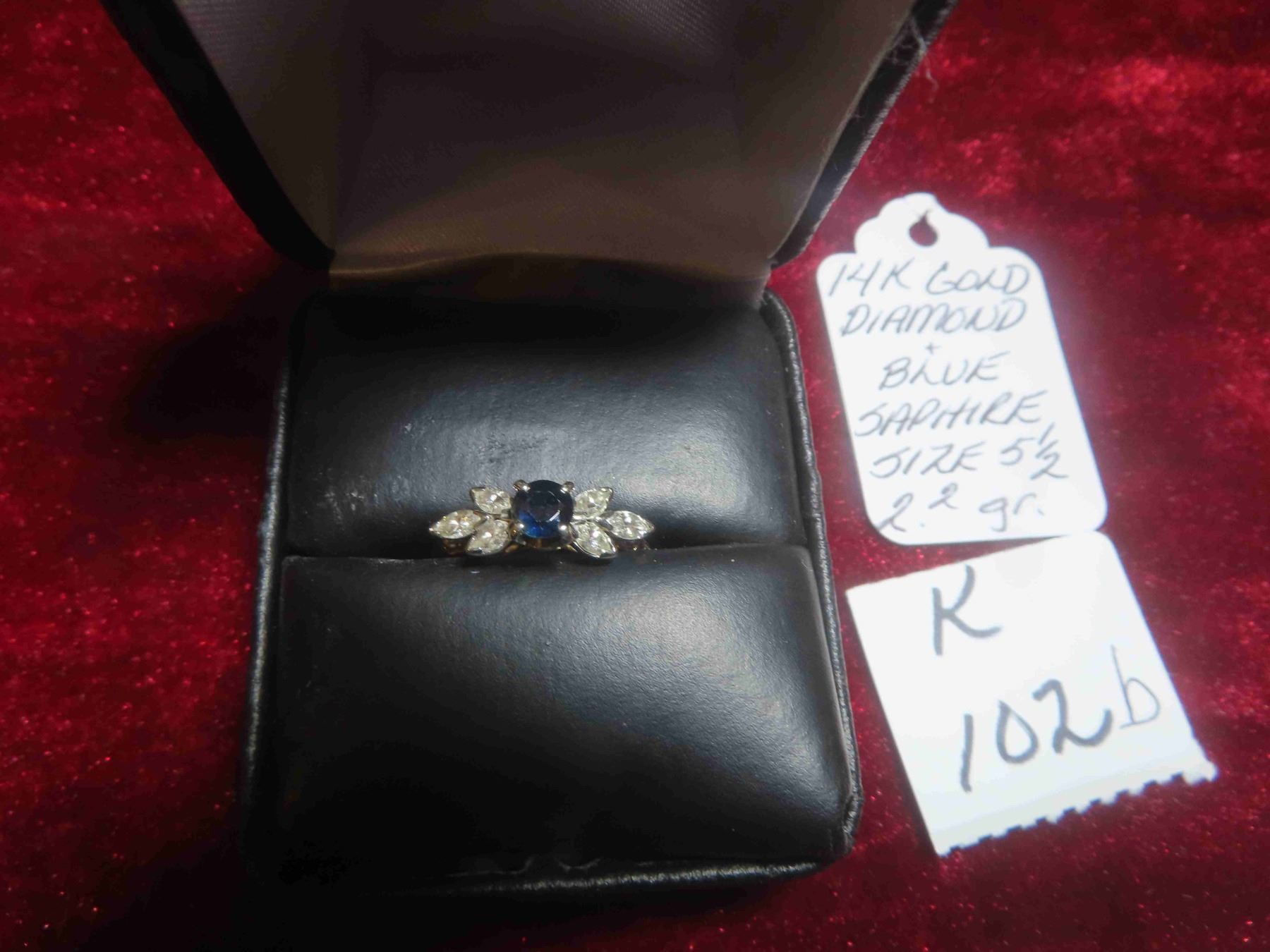 14K Gold Ring with Diamonds + Blue Sapphire Ladies Sz 5.5 - Total Weight 2.2gr