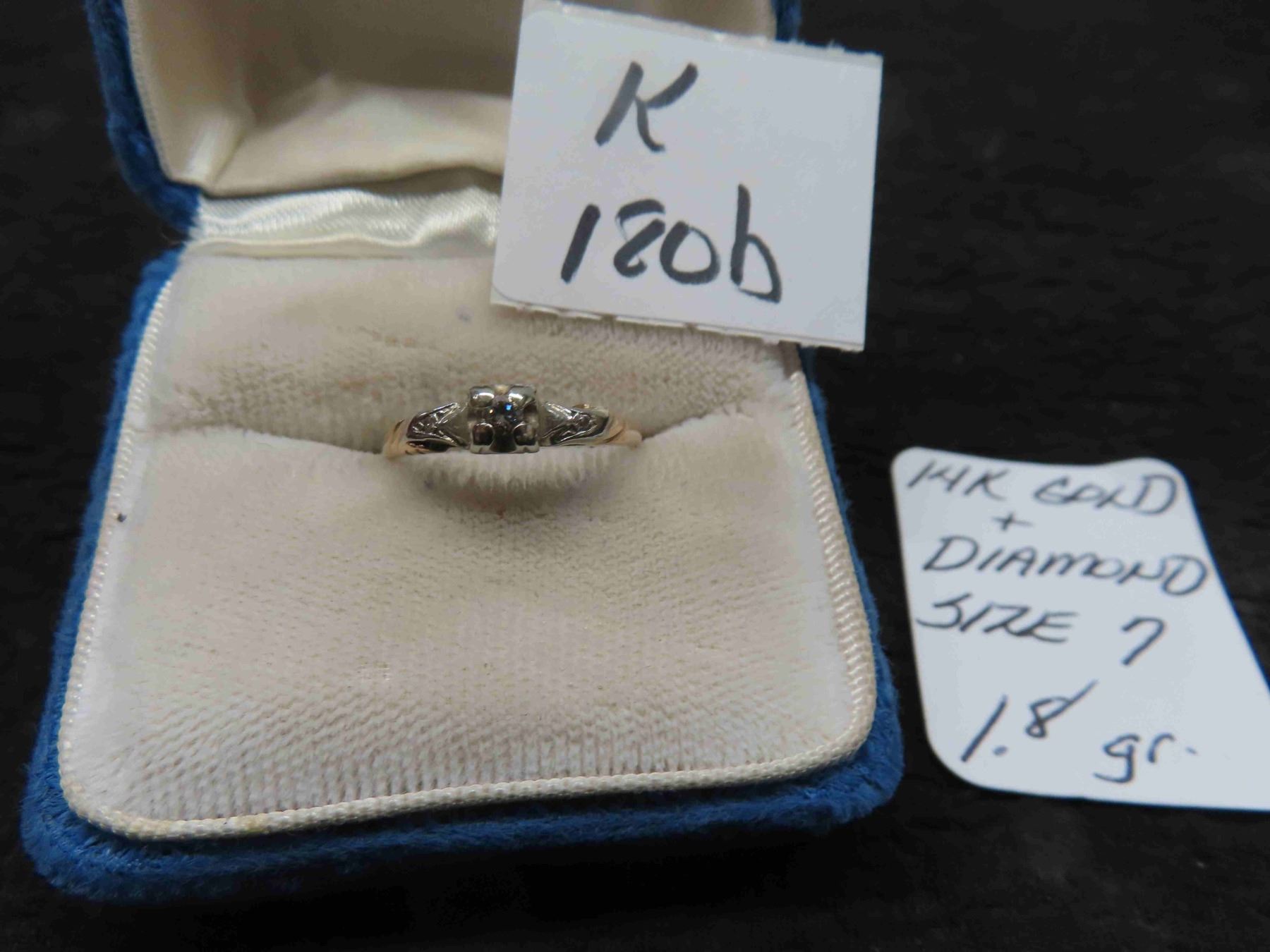 14K Gold and Diamond Size 7 Ring. Total Weight 1.8 Grams