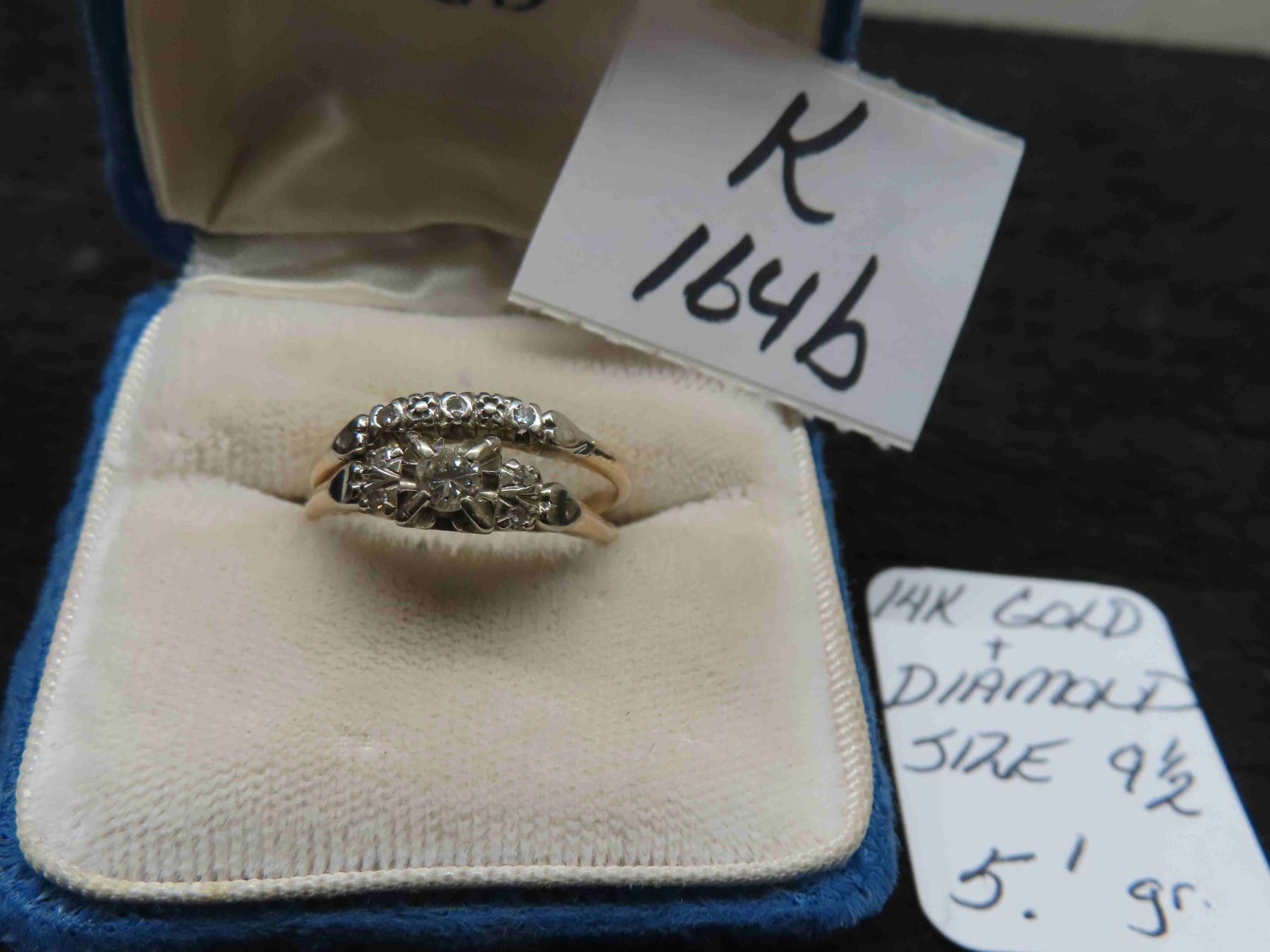 14K Gold and Diamond Size 9.5 Ring Set 9.5 Ring Set. Total Weight 5.1 Grams