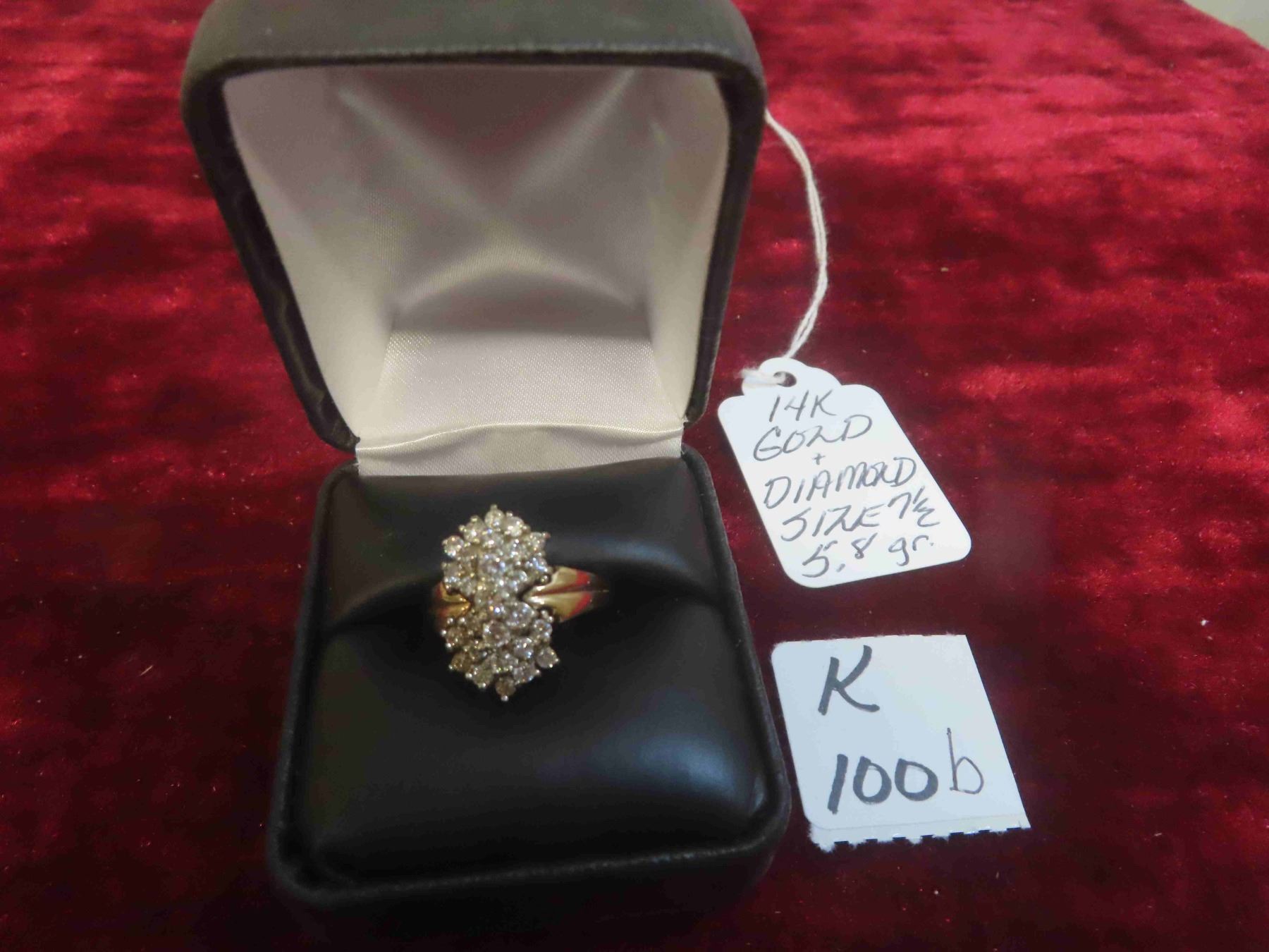 14K Gold with Diamonds Ladies Sz 7.5 Ring - Total Weight 5.8 gr