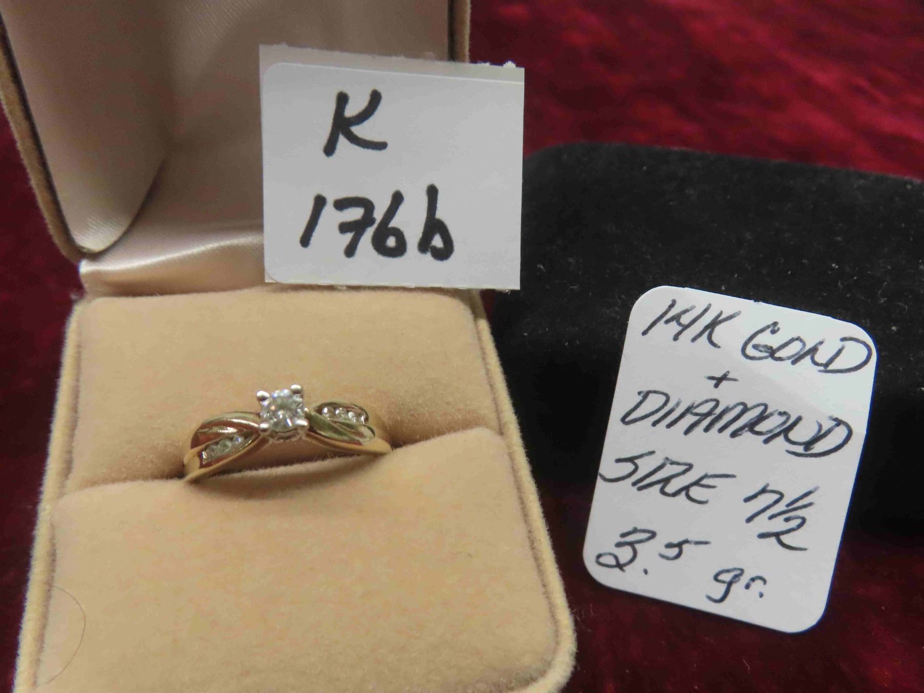 14k Gold + Diamond Ring Size 7 1/2 Total Weight 3.5 Grams