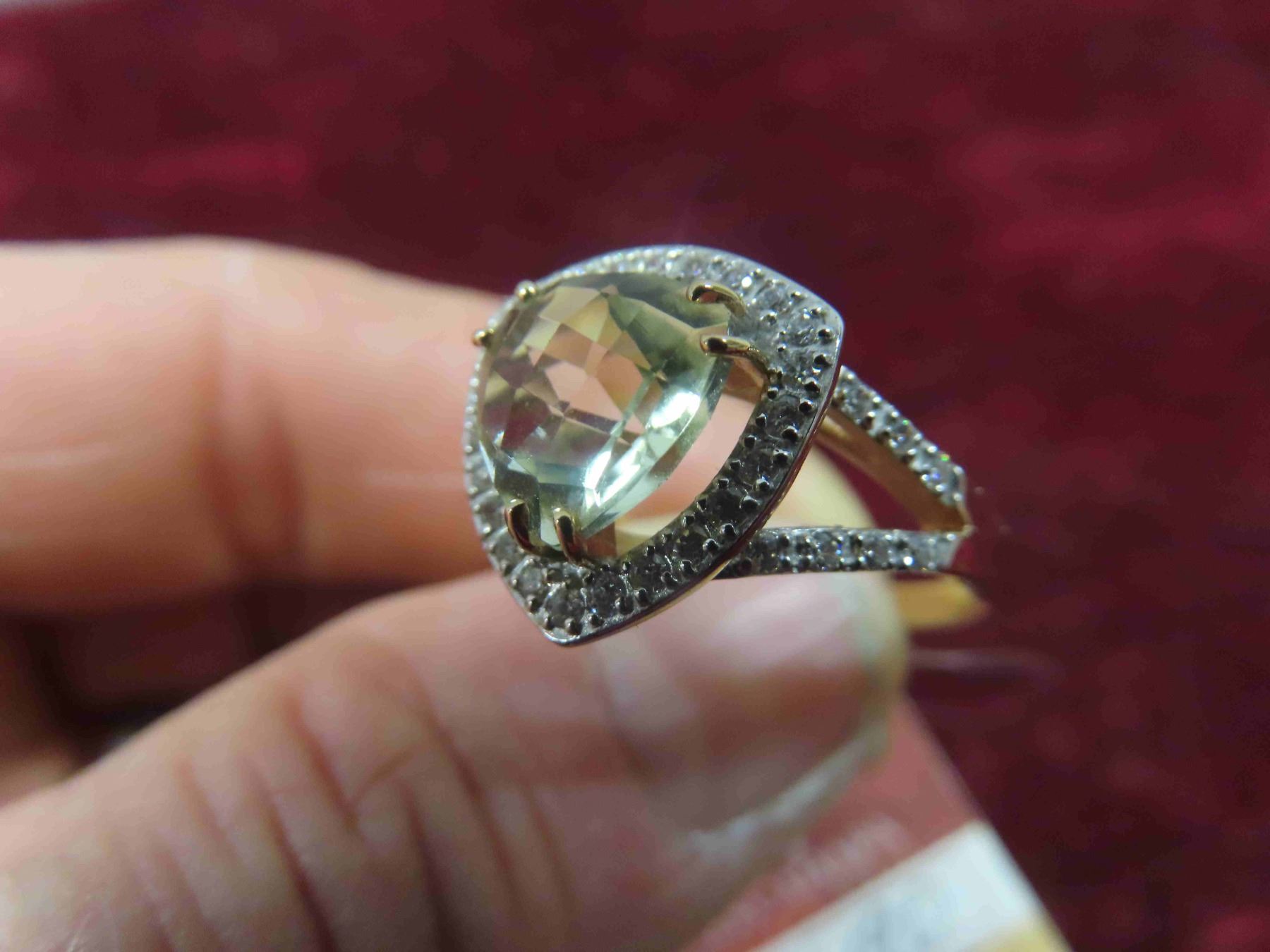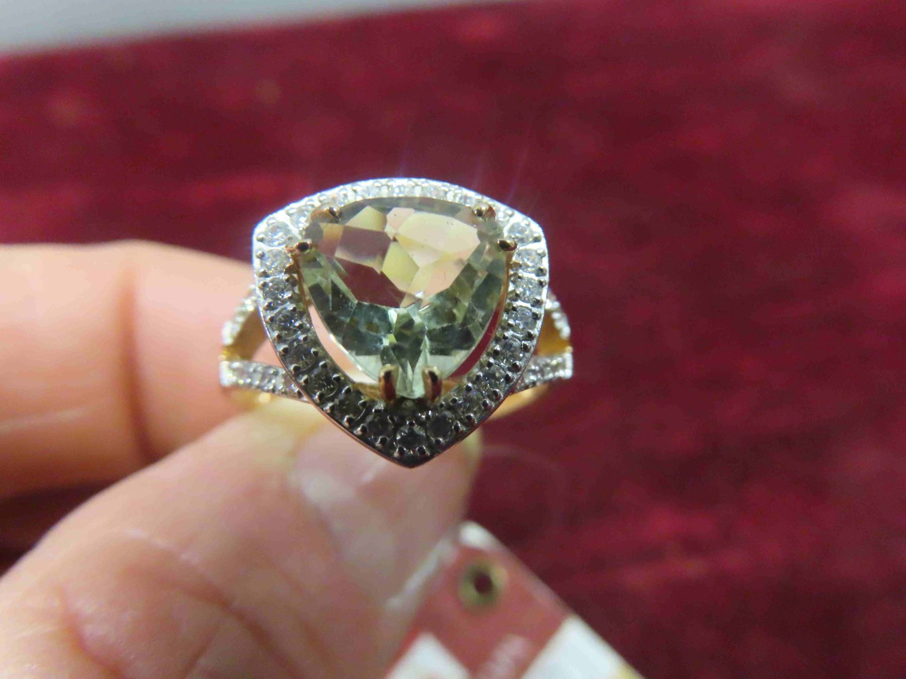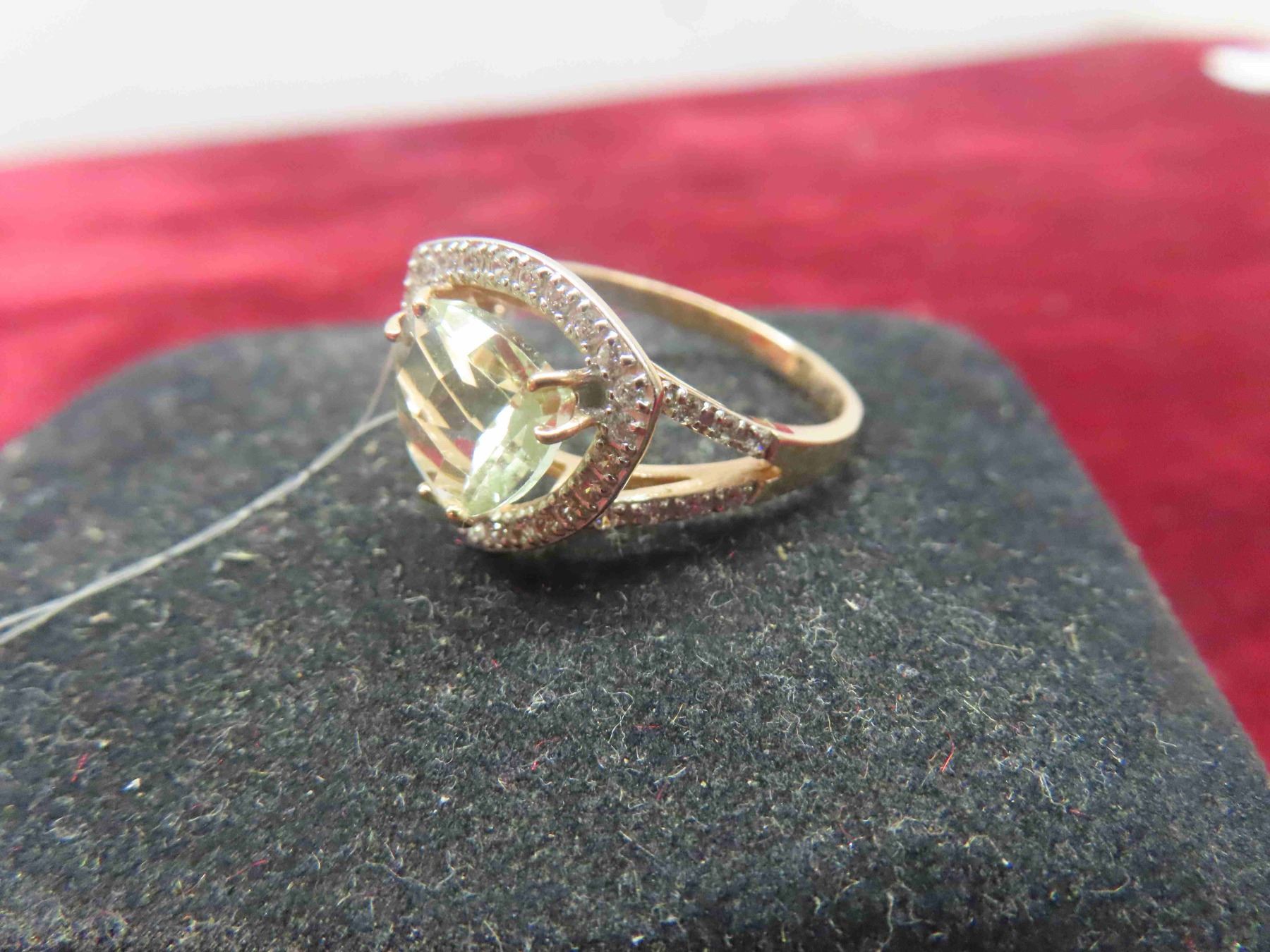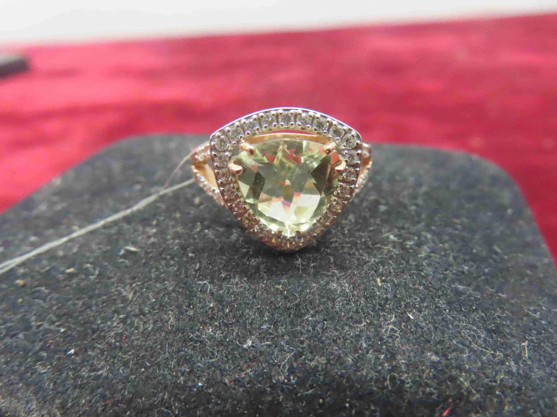 14kt Gold Ring with Cubic Zirconia amd Prasiolite Size 9, Total Weight 3.85 Grams with Tags