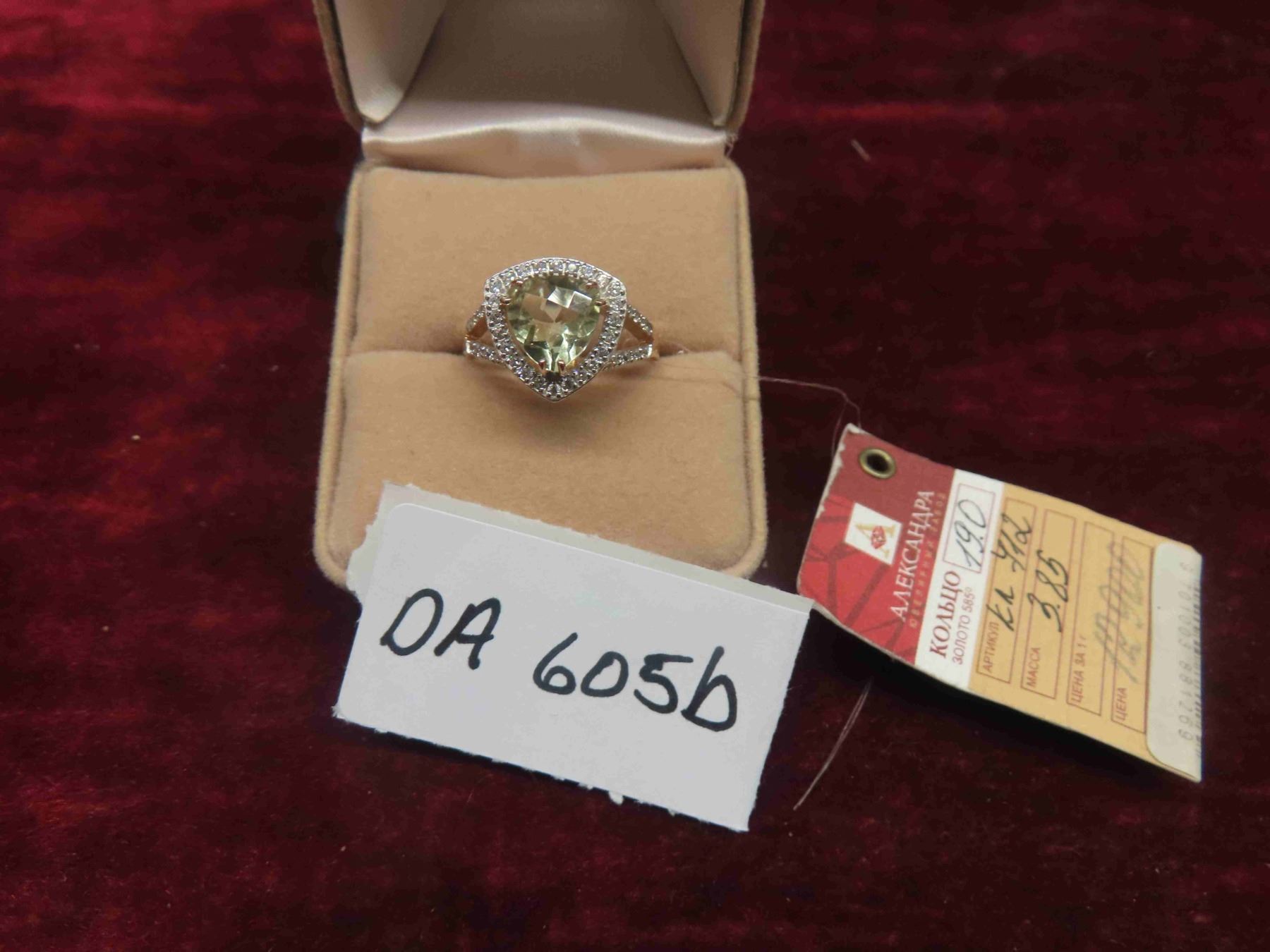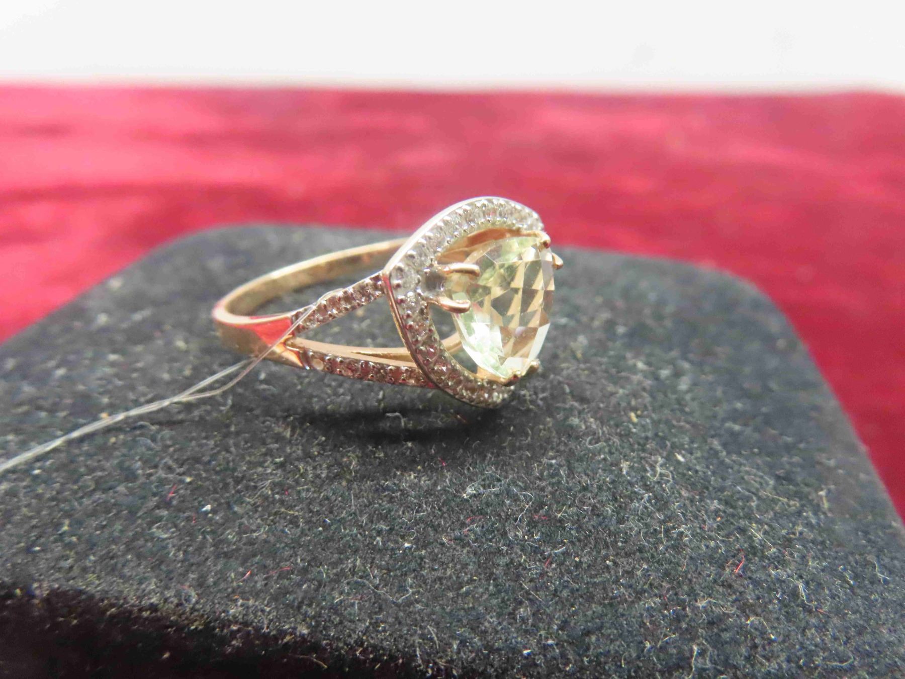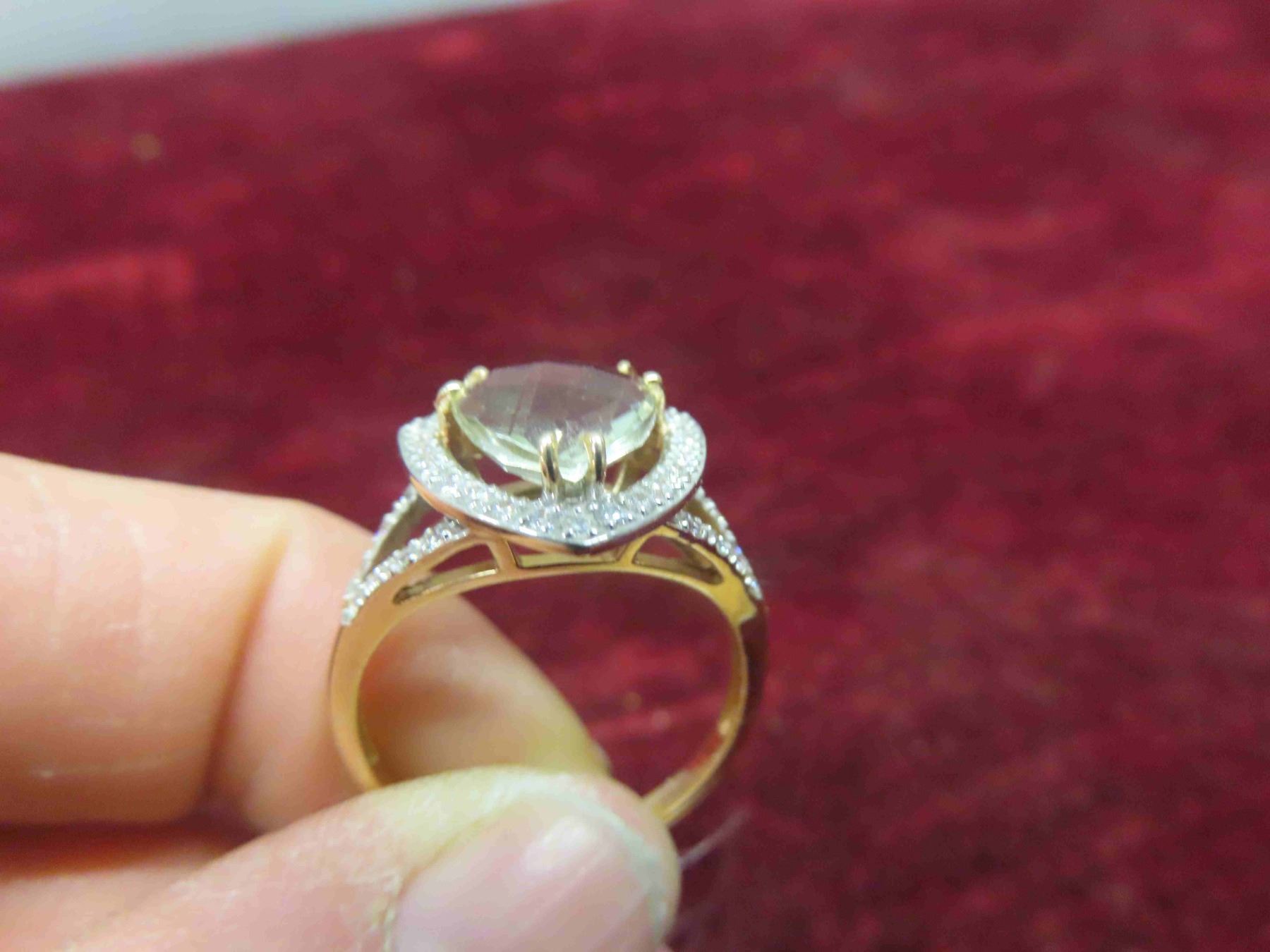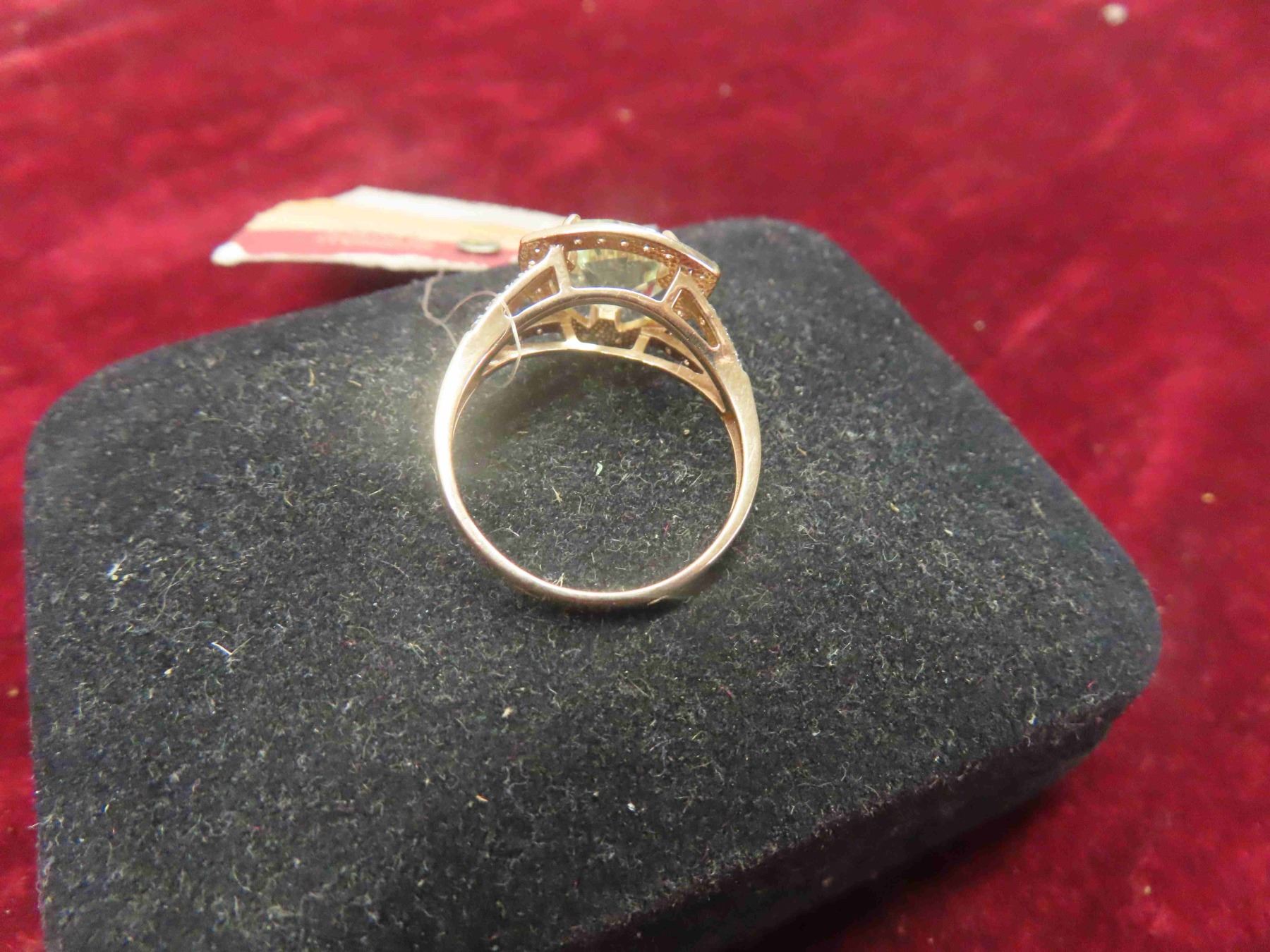 14kt Gold Ring with Cubic Zirconia amd Prasiolite Size 9, Total Weight 3.85 Grams with Tags