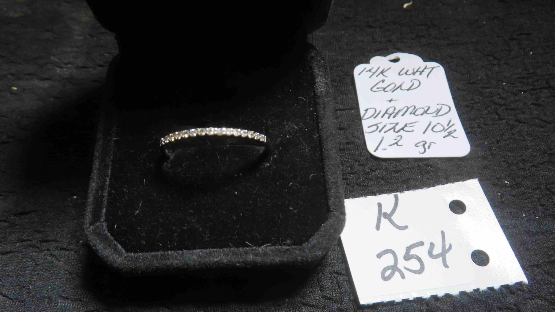 14kt White Gold and Diamond Ladies Ring Size 10 1/2 Total Weight 1.2 Grams