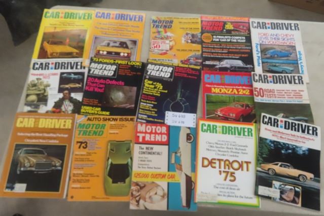 15 Assorted Car Magazines ; Car + Driver, Motortrend, - Mostly 1970's