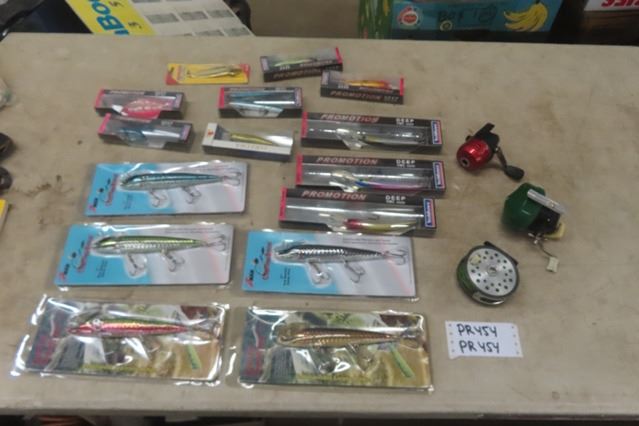 15 Assorted Fishing Hooks - up to 8" + a Couple Fishing Reels
