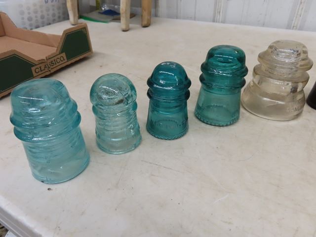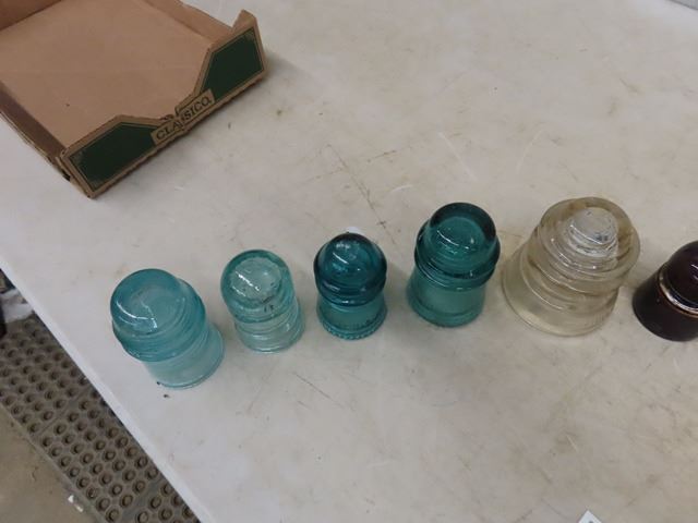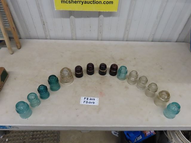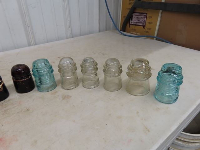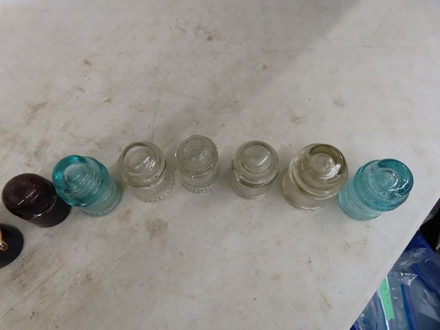 15 Assorted Glass + Porcelain Insulators ; Blue, Clear, Brown