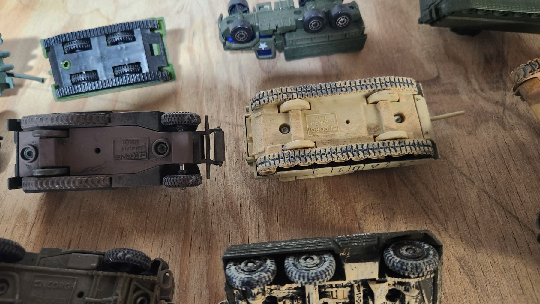 15 CORGI, MAISTO MINIATURE METAL ARMY VEHICLES.