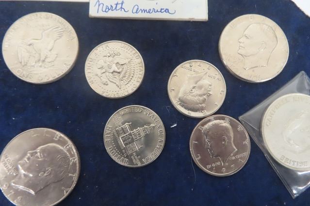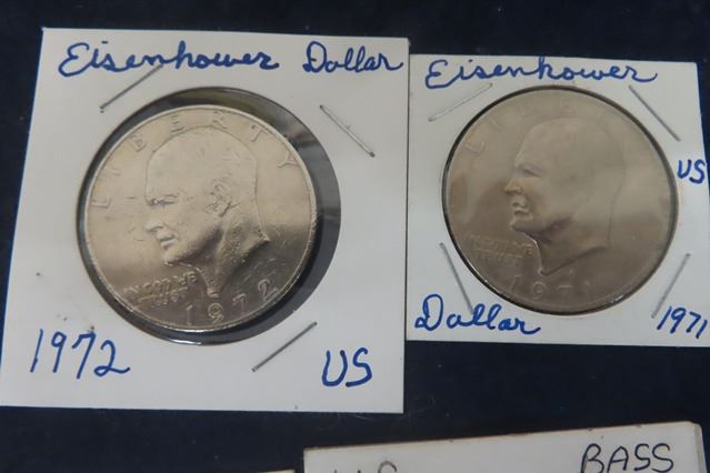15 Coins ; (2) '71 Eisenhower Dollar USA, '72 Eisenhower Dollar USA - Most '70s USA . 999 Silver American Wildlife Series plus others