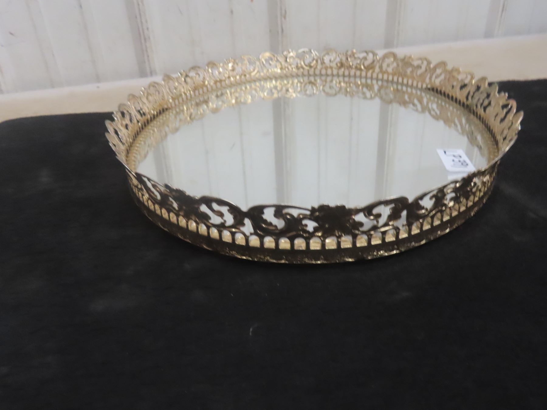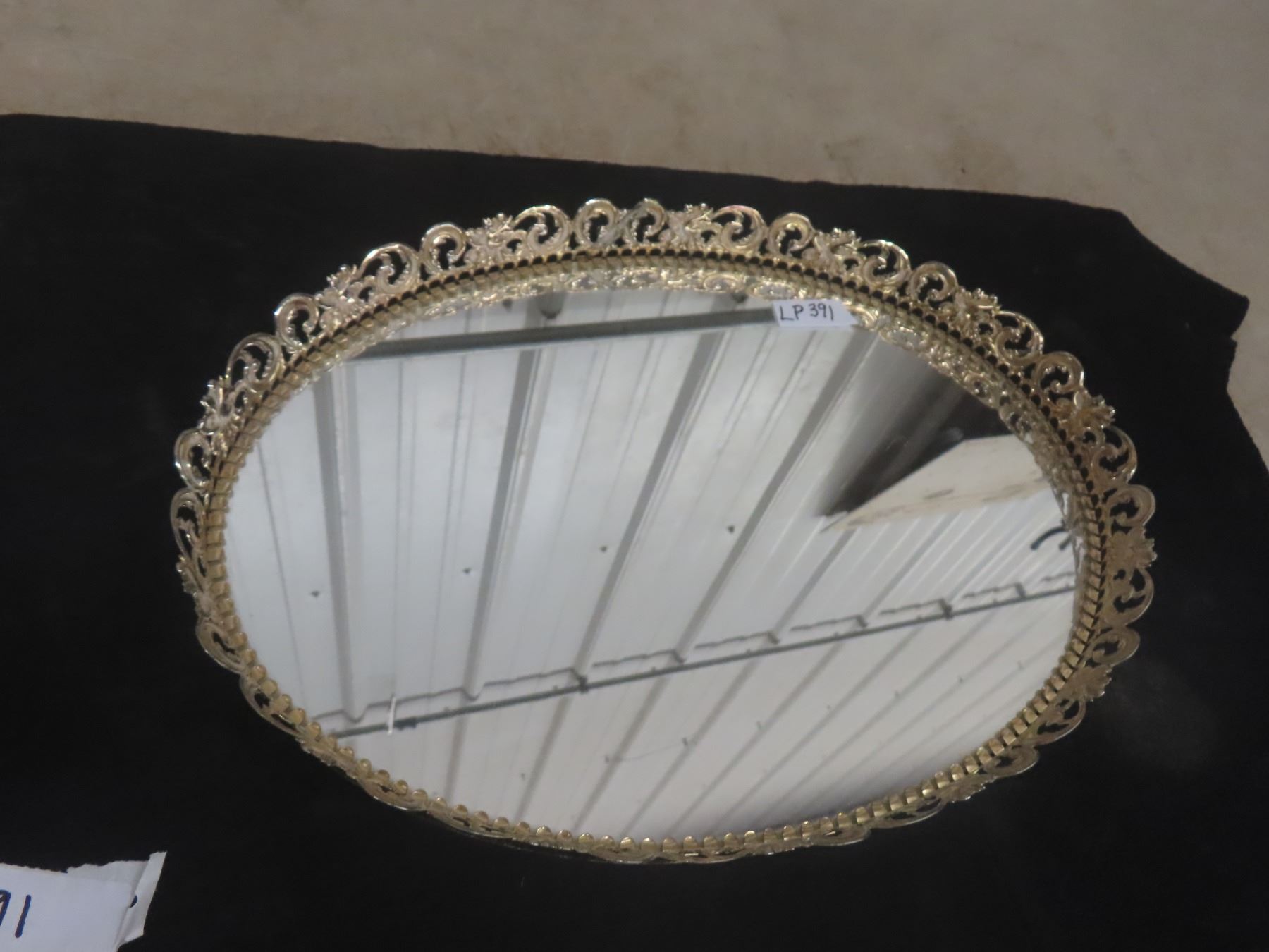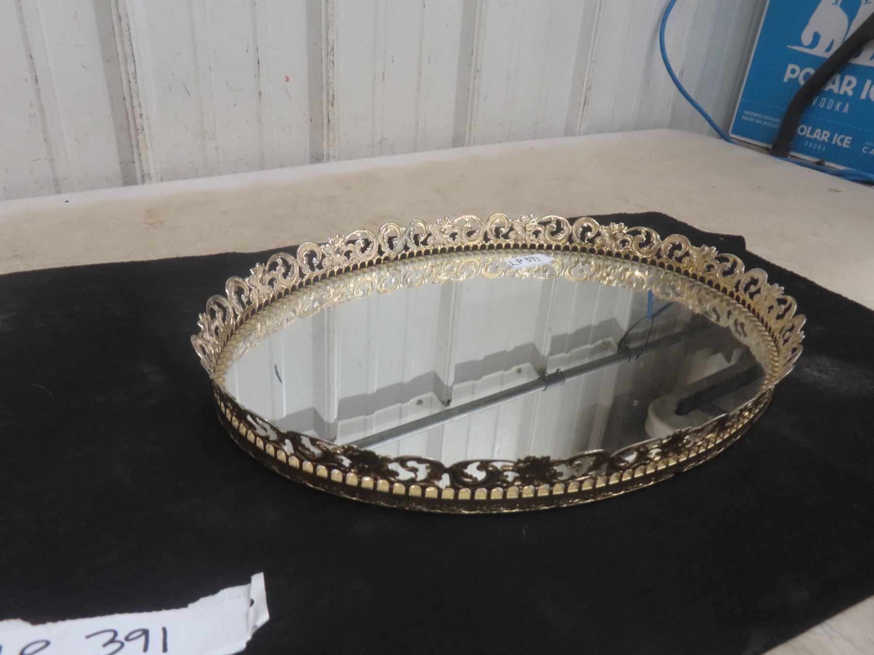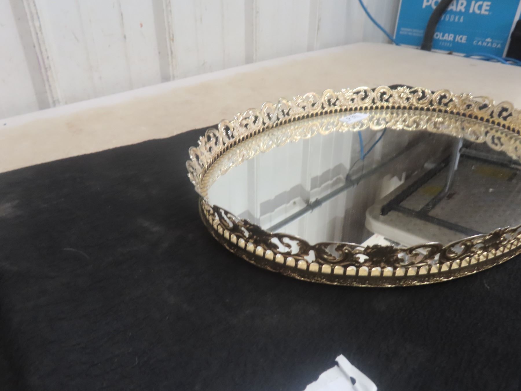 15"x11" Vintage Oval Mirror, Metal Perfume Tray