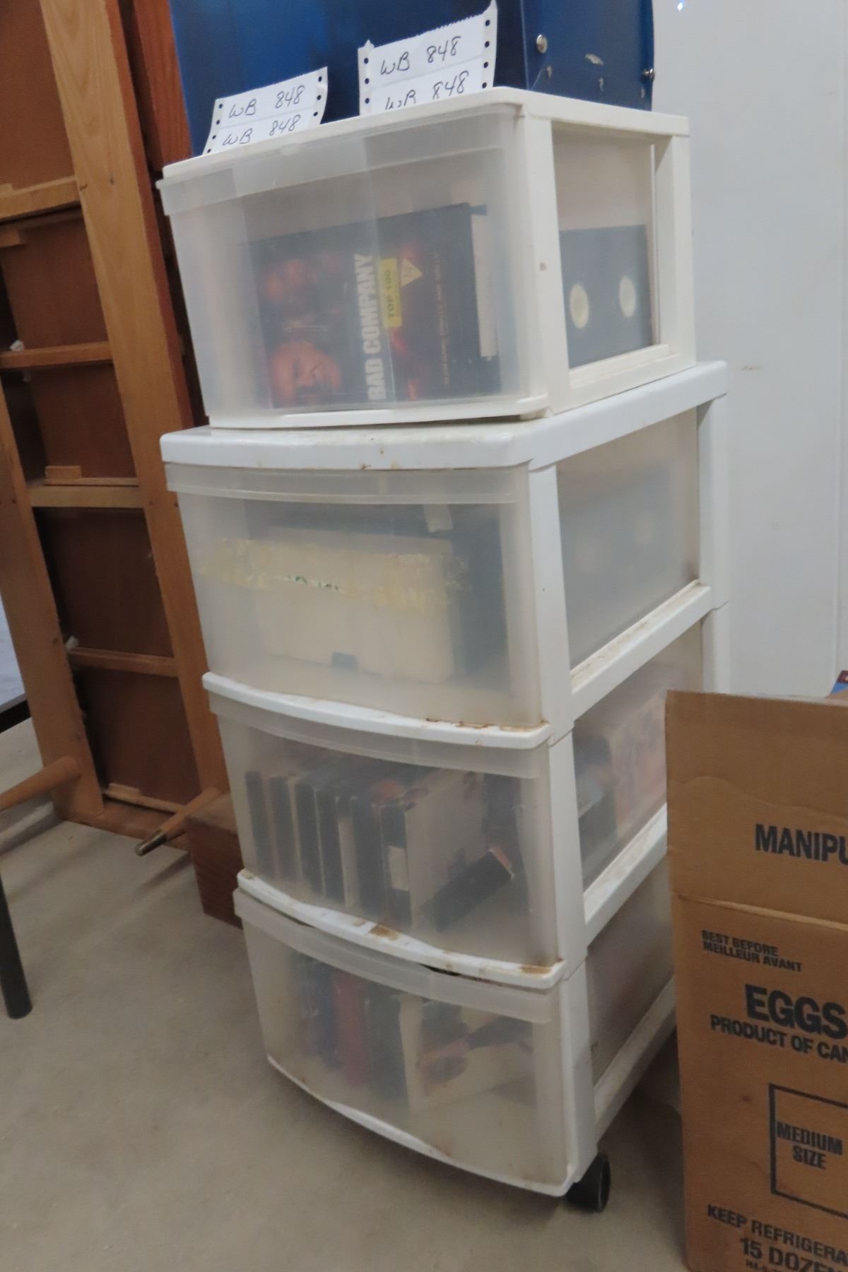 150 VHS 3 Drawer Plastic Organizer and DVD's