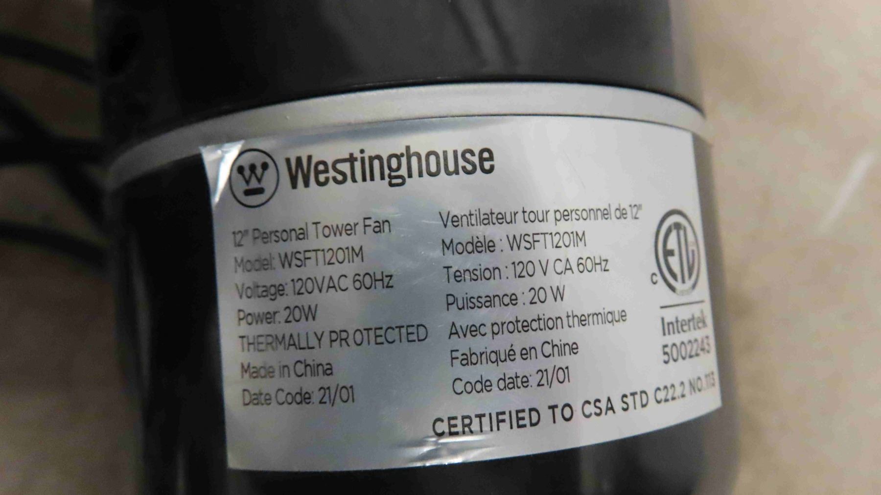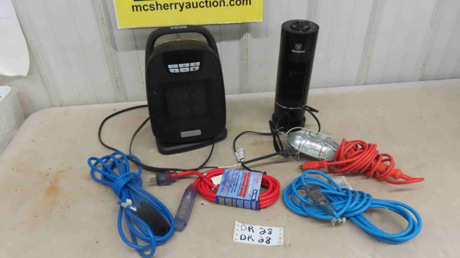 1500 Watt Heater , Trouble Lights , 2 Extension Cords , Westinghouse 12'' Tower Fan