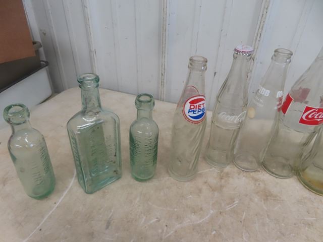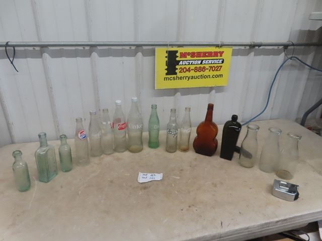 16 Bottles ; Pop, Wine + Labelled Cream Bottles