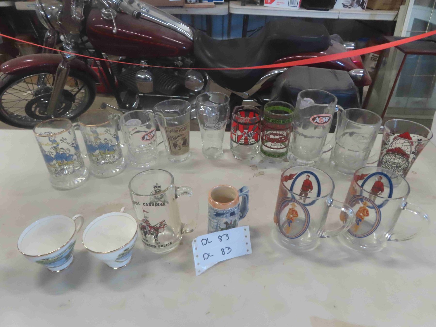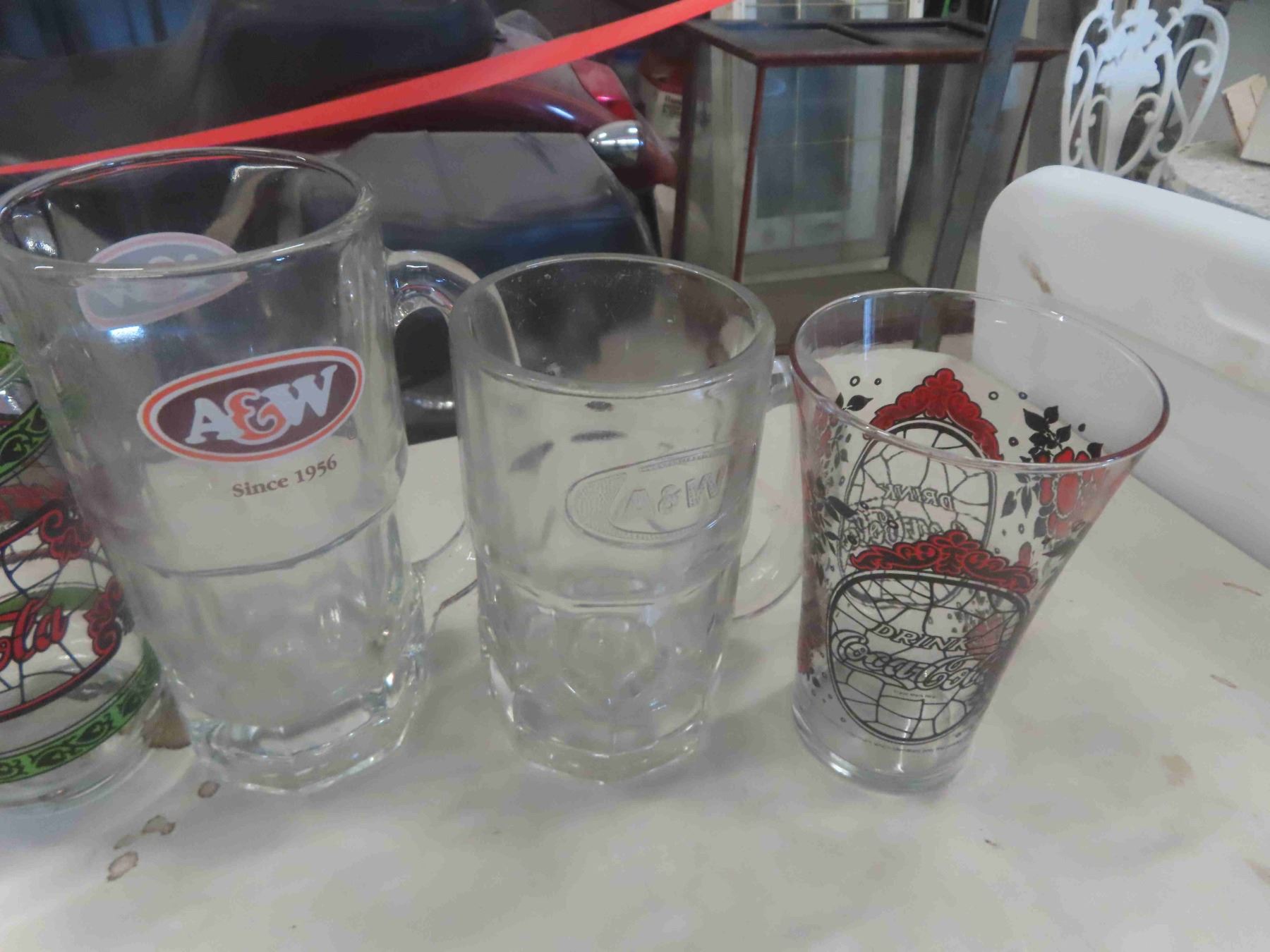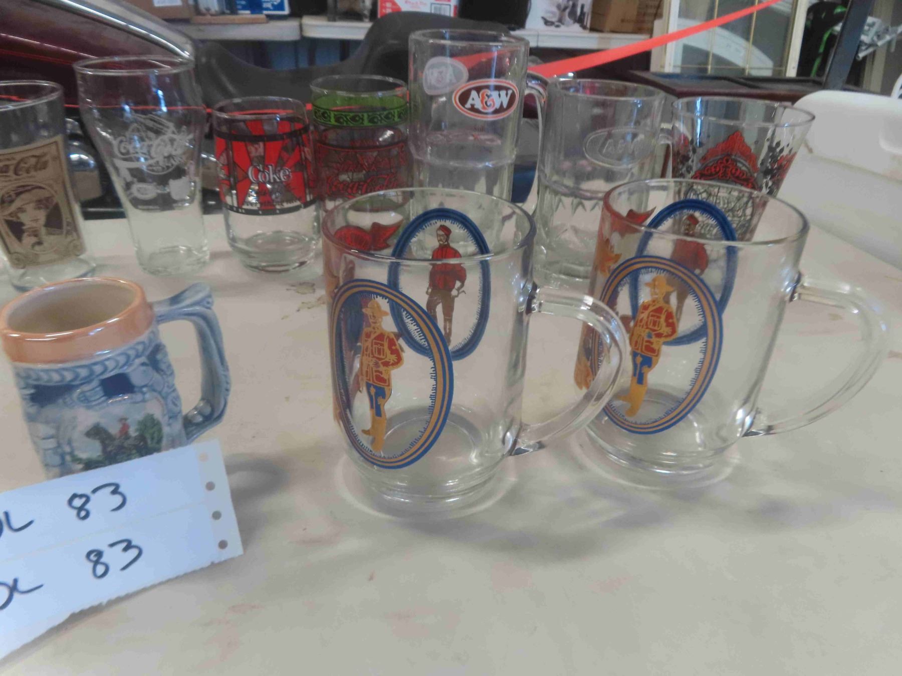 16 Glass Mugs, : A&W, RCMP, Coke, Plus