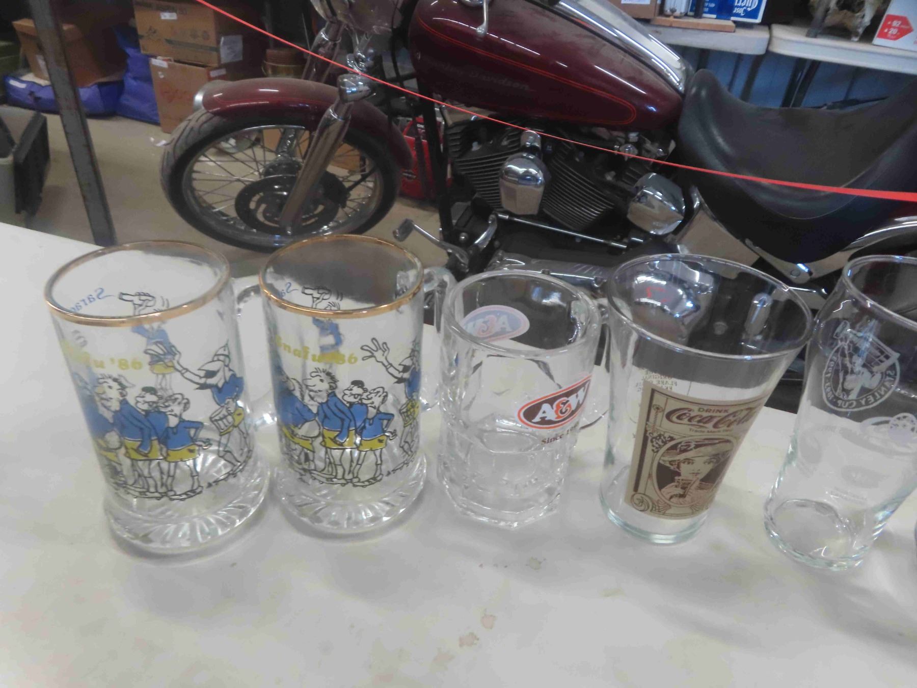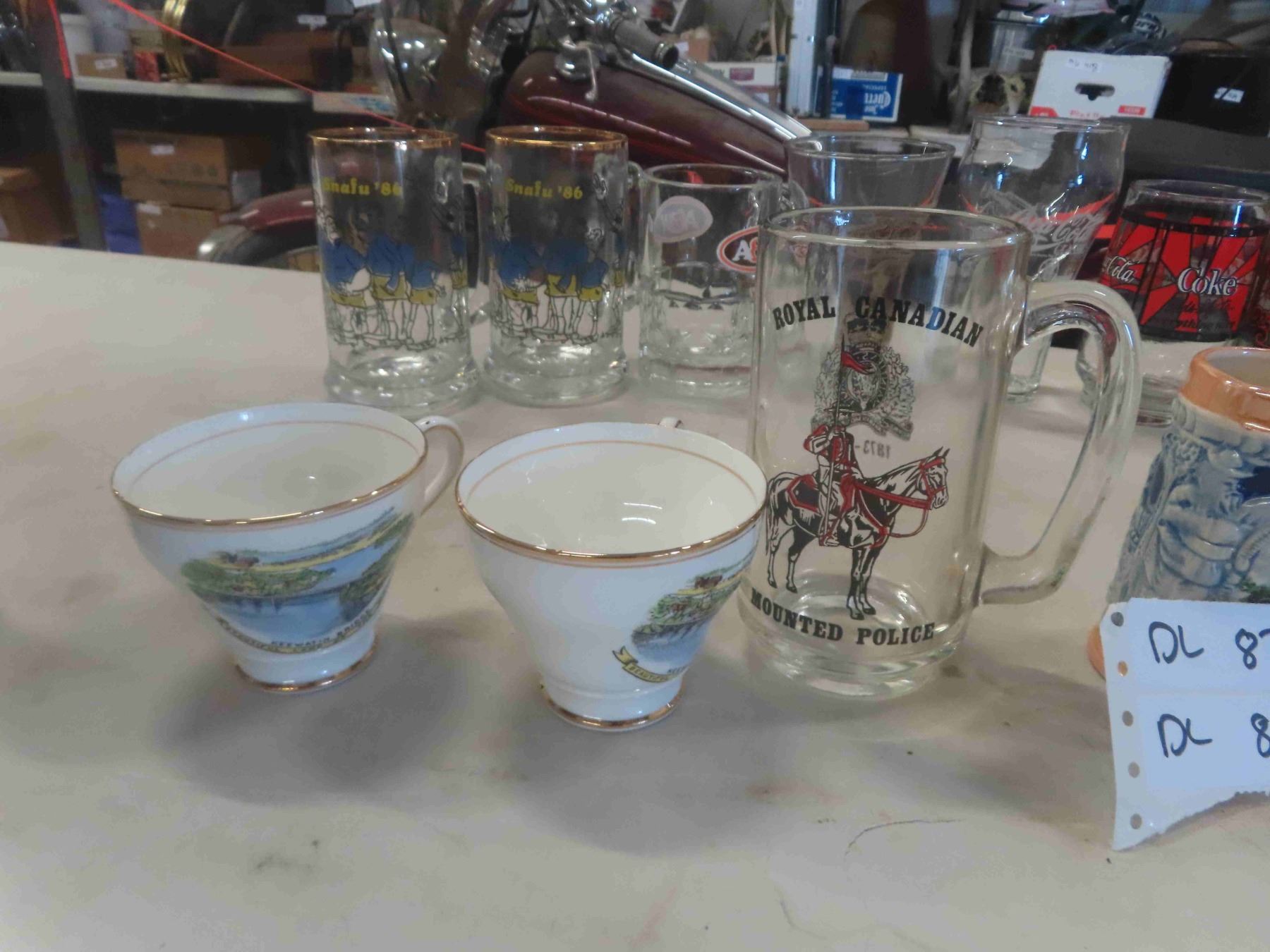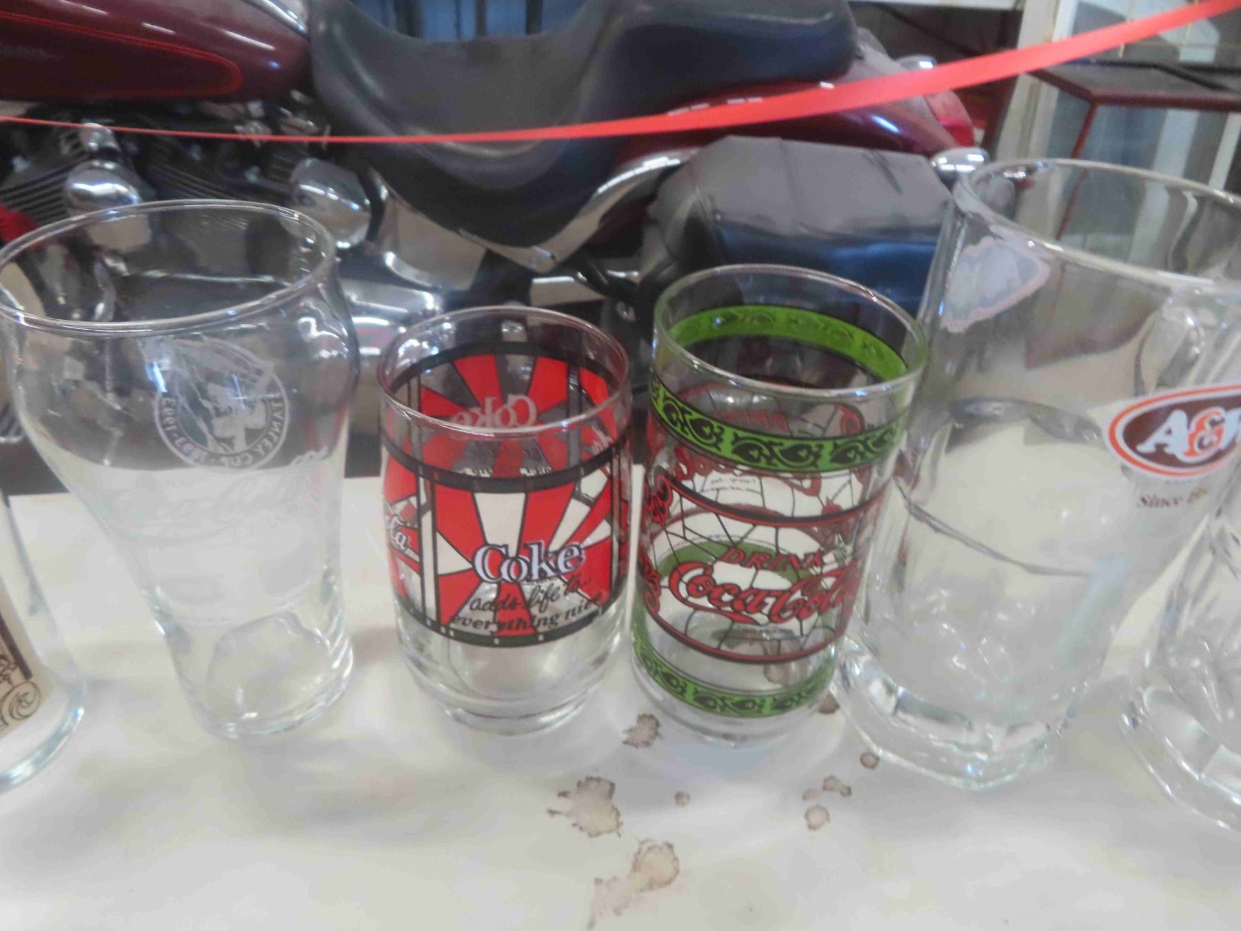 16 Glass Mugs, : A&W, RCMP, Coke, Plus