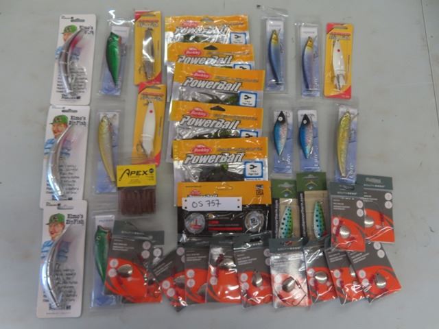 16 Lures, 6 Bags of Power Bait, 12 Packs of Pike Spin Rigs