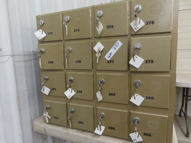 16 Metal Mail Boxes w Keys = 4 Boxes x 4 Stacks
