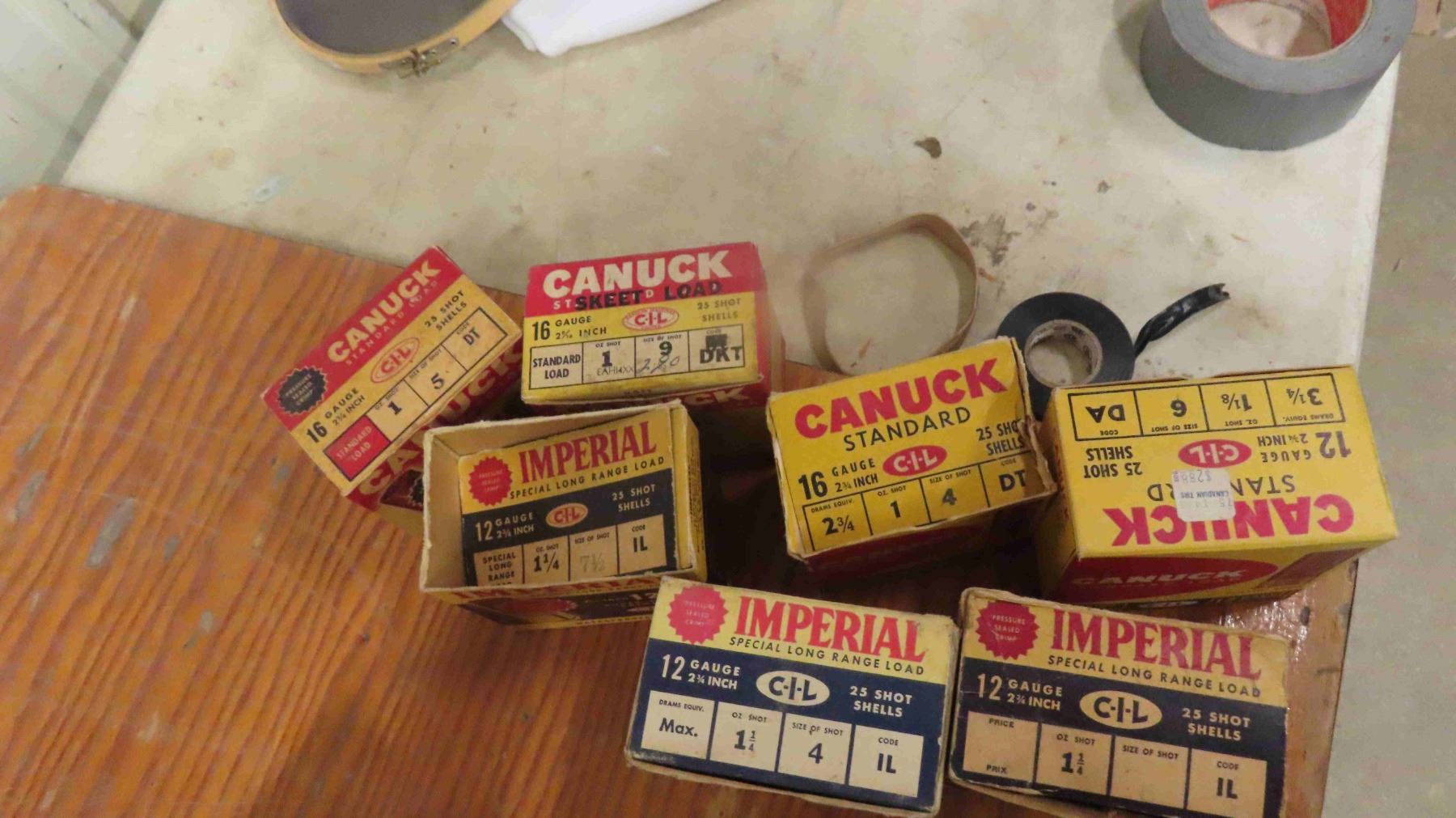 16 Vintage Shot Gun Ammo Boxes - Empty ; CiL, Imperial, Canuck 12 Gauge, 28 Gauge, 20 Gauge, 16 Gauge