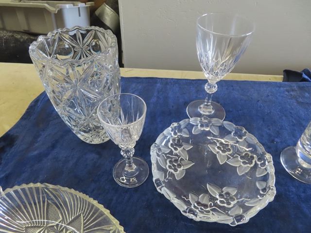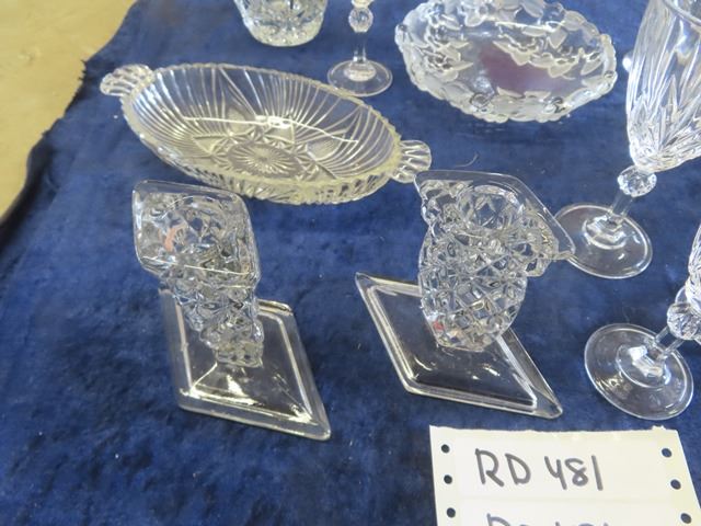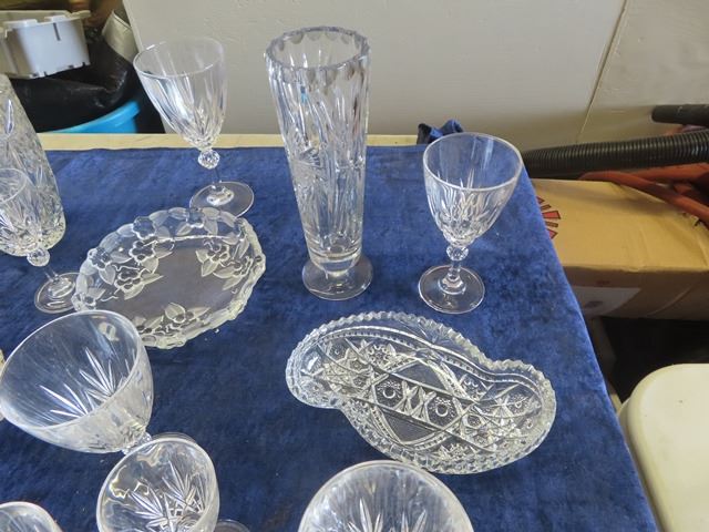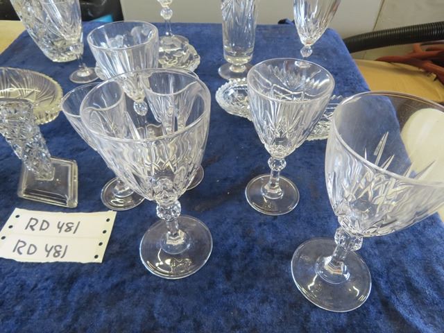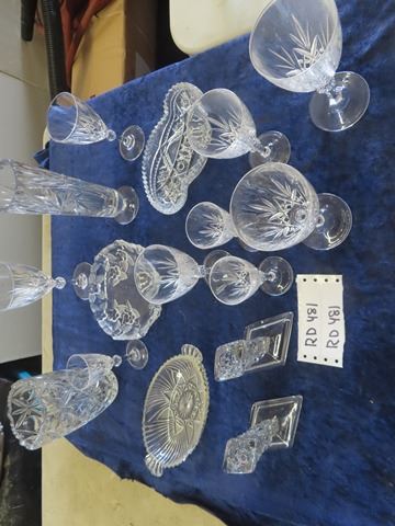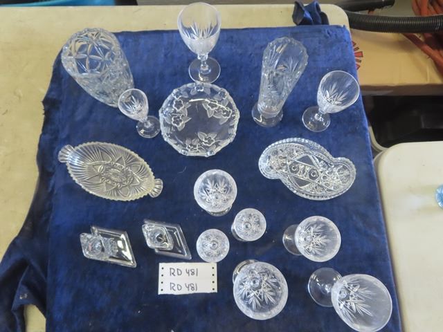 16 pcs of Crystal + Cut Glass; Glasses, Candy Dishes, Candle Holders