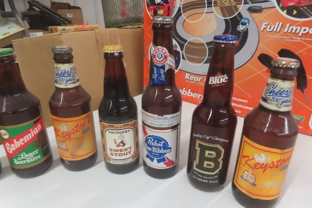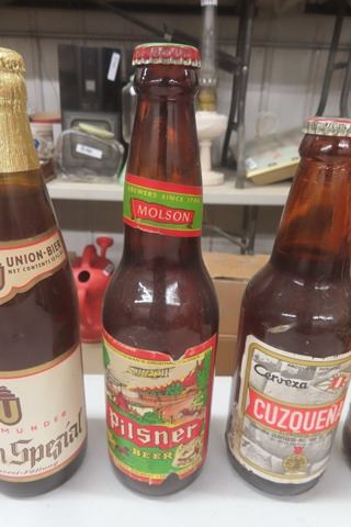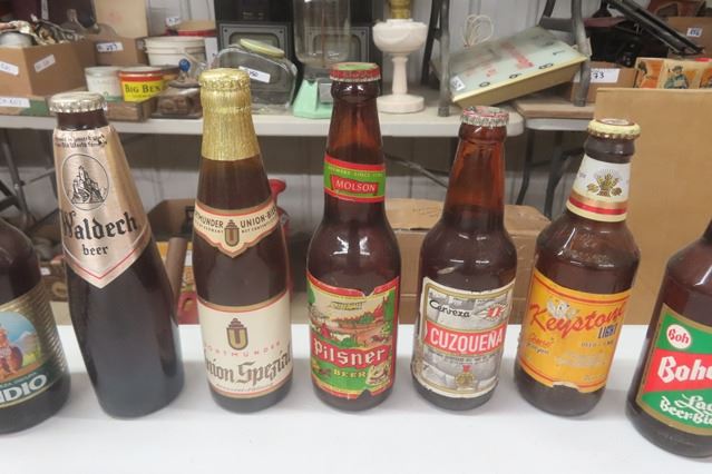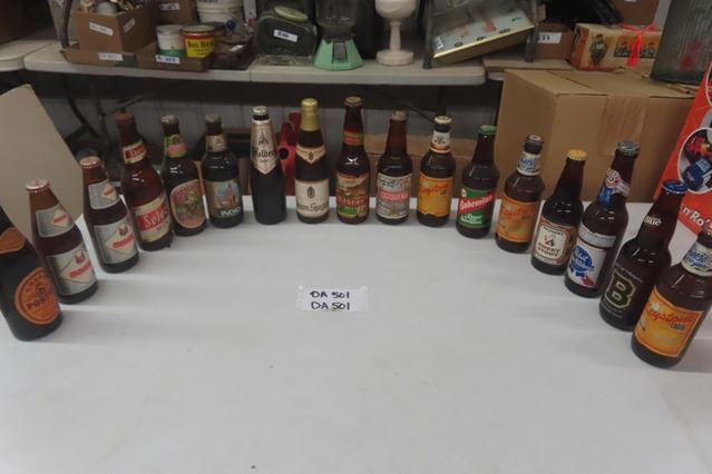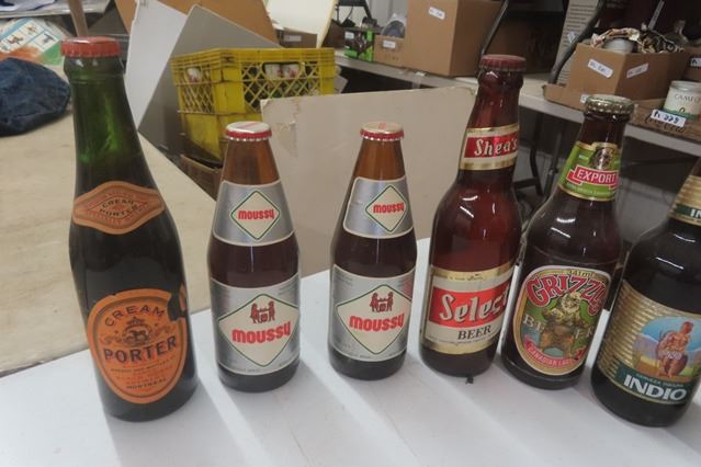 17 Assorted Paper Label Beer Bottles ; Keystone, Grizzly, Shea's Select, Moussy, Pabst