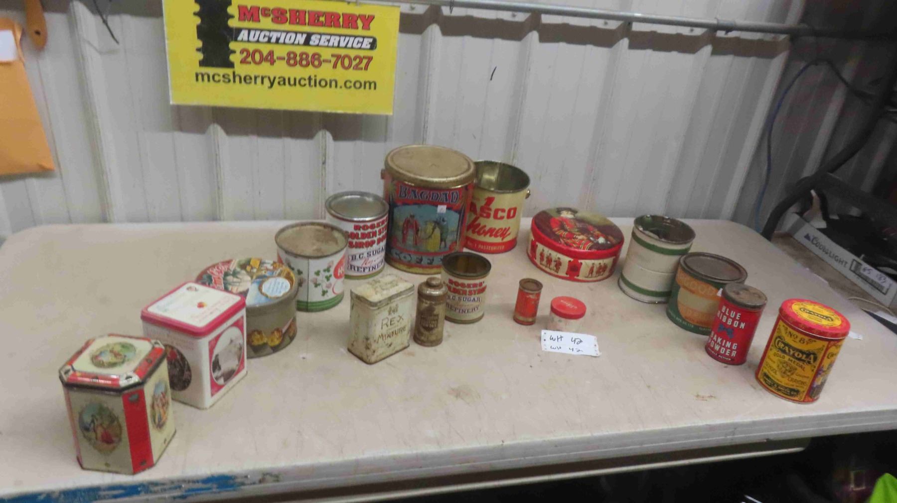 17 Old Coffee, Blue Ribbon, Rogers Syrup, Etc. Tins