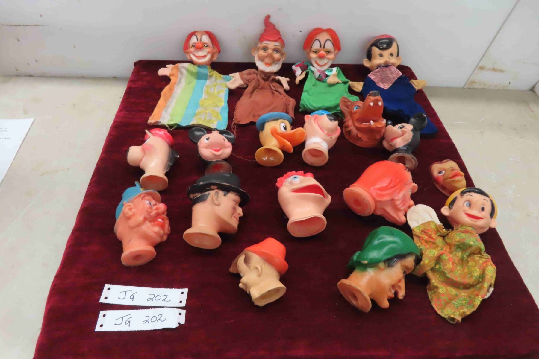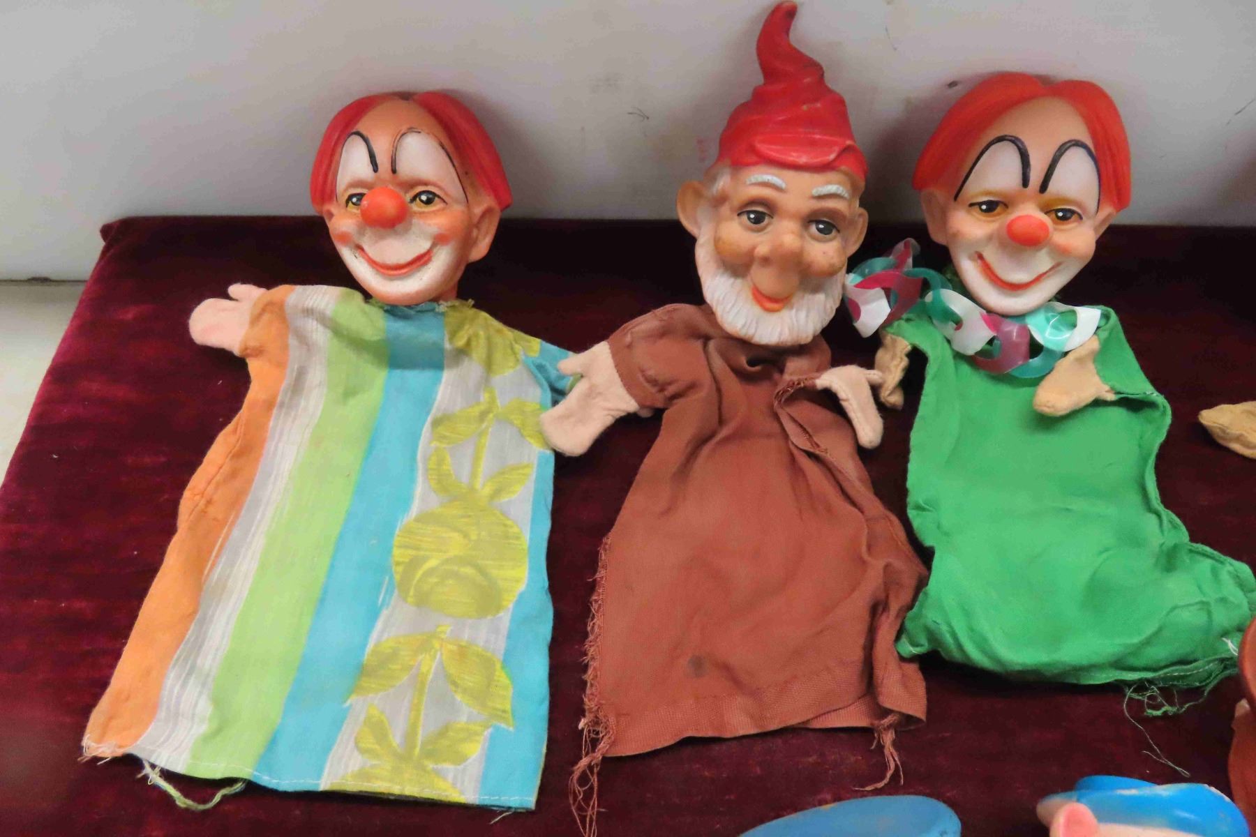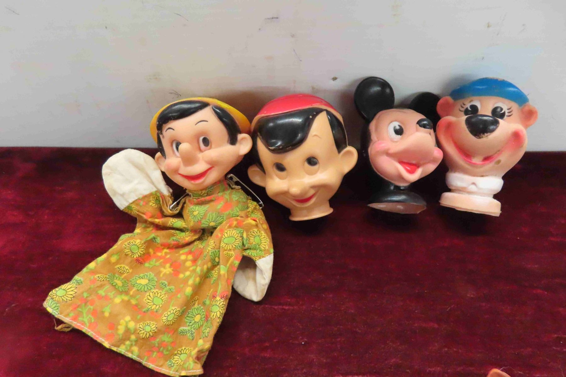 (17)Vintage Hand Puppets ( Dick Tracy, Pinochio, Mickey Mouse, Yogi Bear, Clowns) 12 Heads Have No Clothes