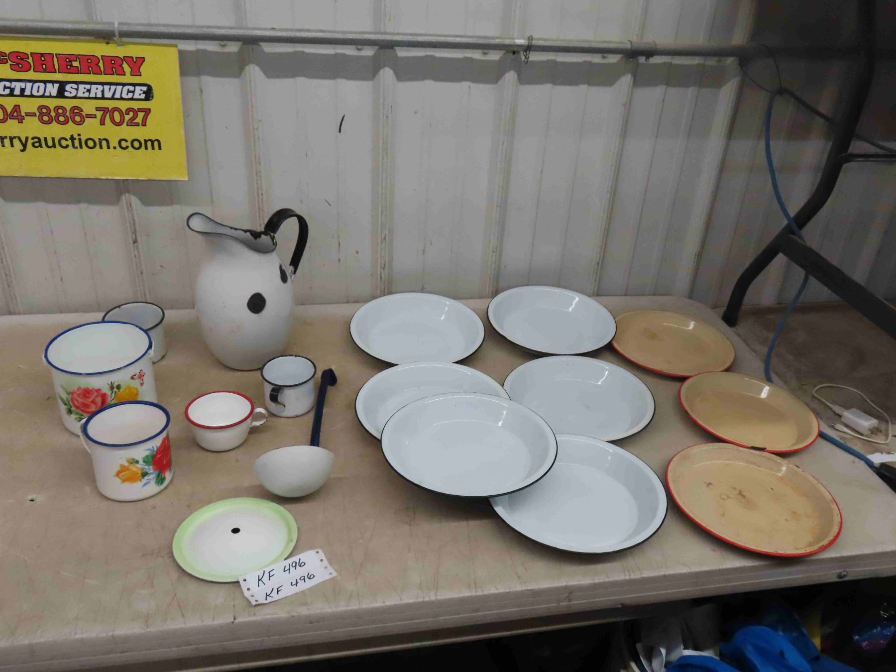 17pcs Enamelware : Pitcher, Dipper, Pie Plate, Mugs & More