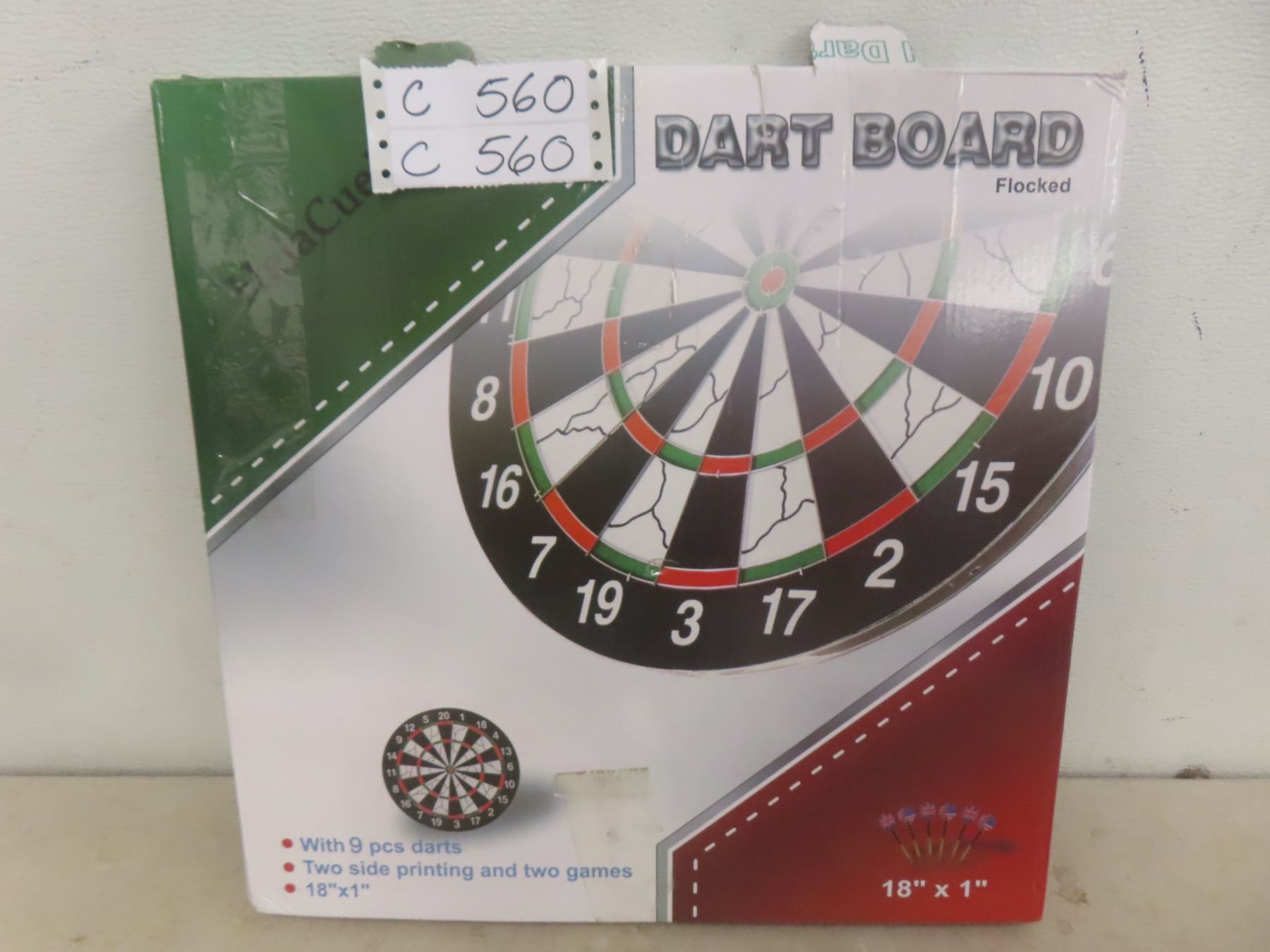 18" (43 cm) Dartboard Doube Sided 2 cm Thickness with 9 Darts New or Store Return