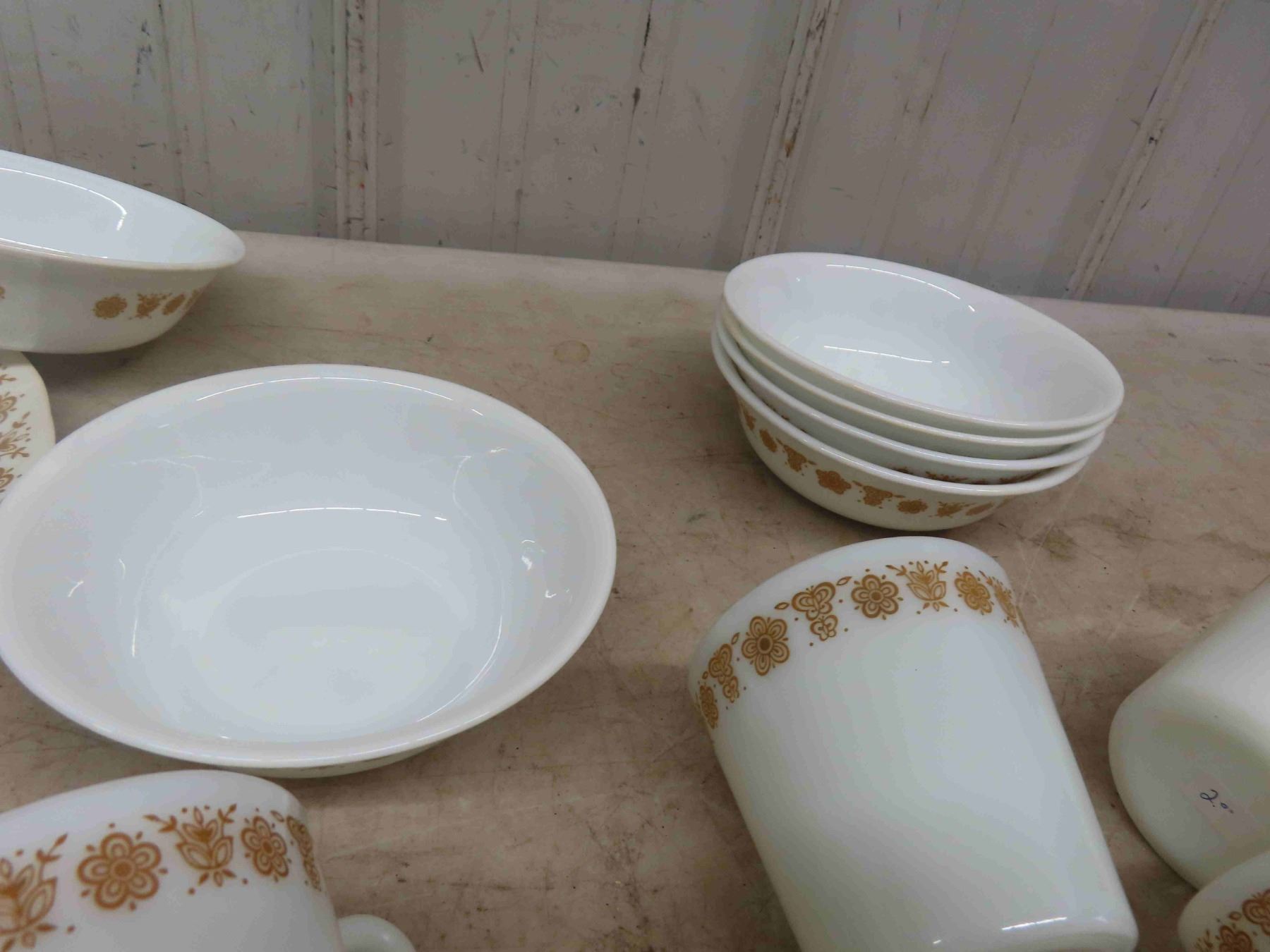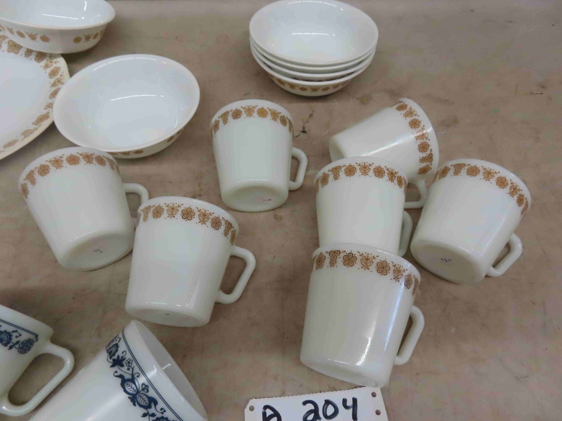 18 Pyrex Dishes ; Plates, Bowls, Cups