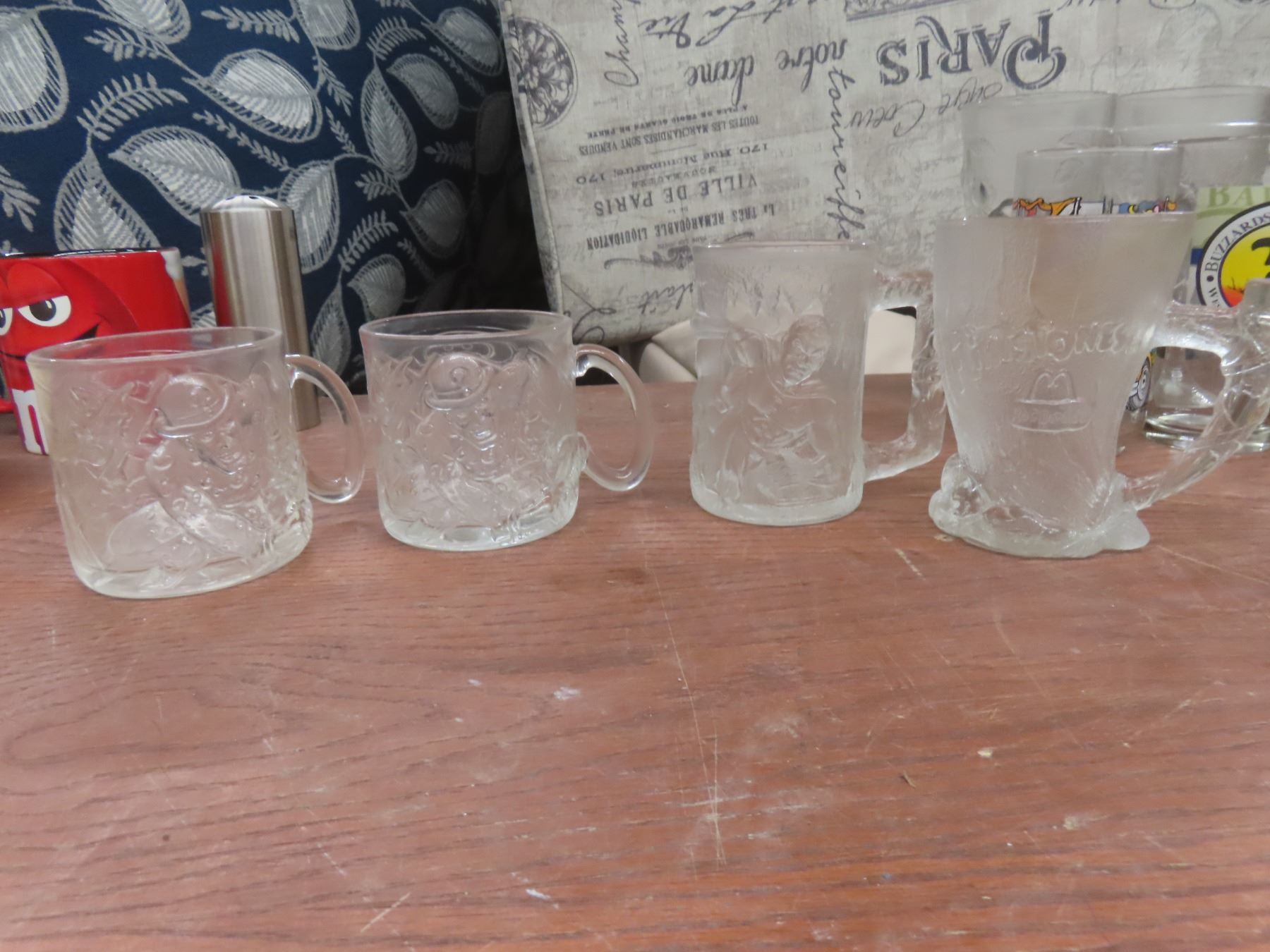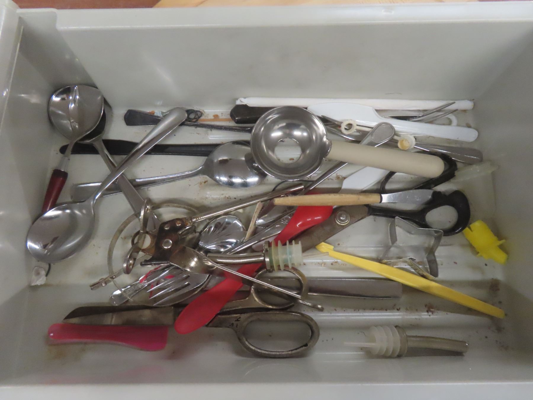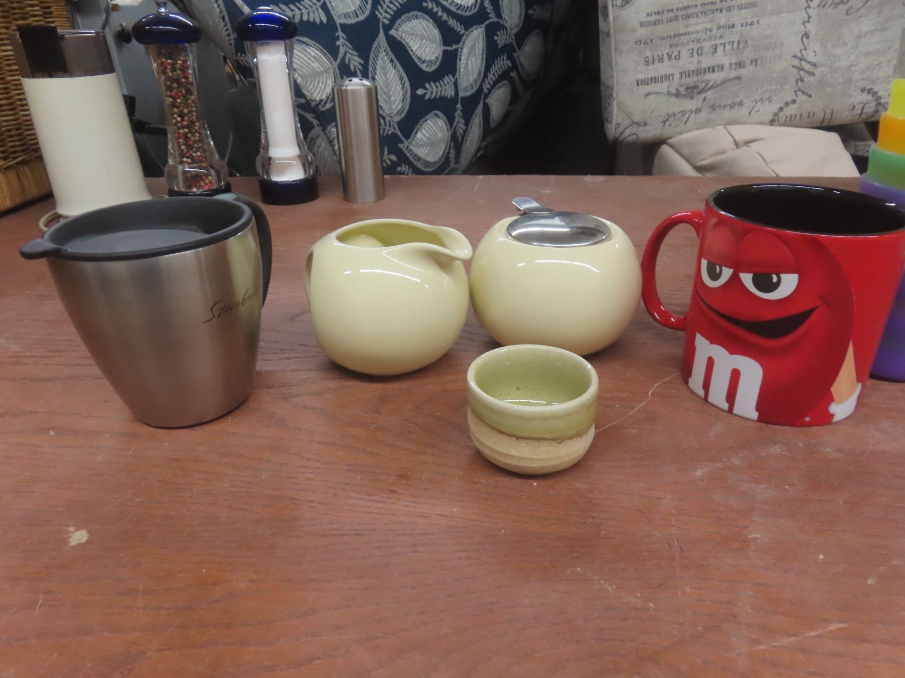 18" Diameter Wooden Cutting Board, Coffee Grinder, Salt And Pepper Shakers, Glassware, And Kitchen Utensils.