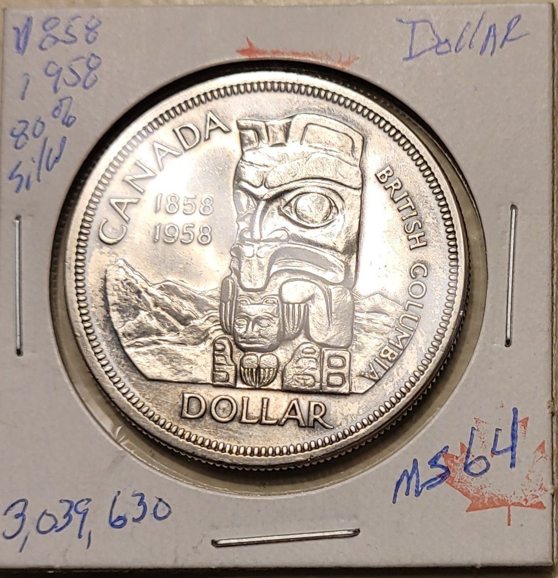 1858-1958 British Columbia Silver Dollar MS 64 80% Silver